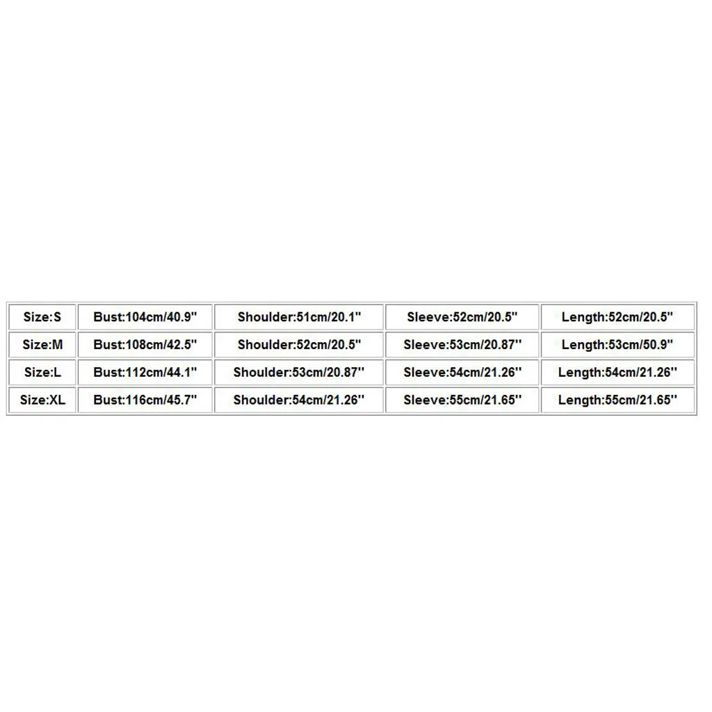 | Размеры: L | Бюст: 112 см/44,1" | Плечо: 53 см/20,87 дюйма | Рукав: 54 см/21,26 дюйма | Длина: 54 см/21,26'' |