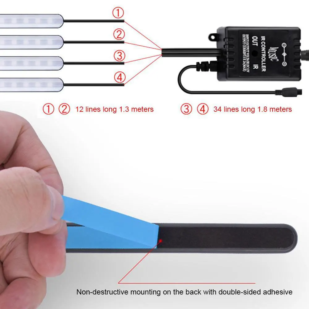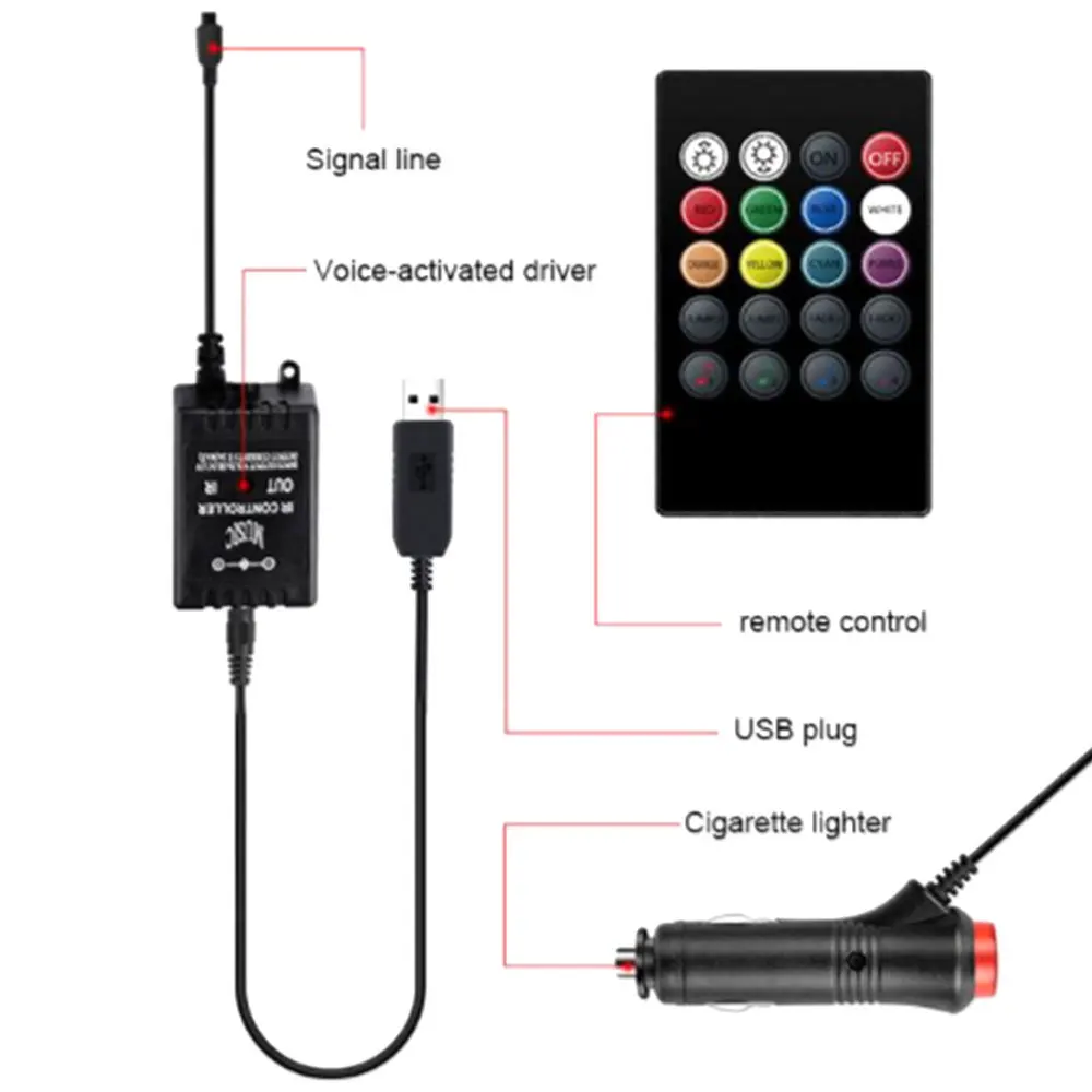 - Wireless music control 7-color RGB interior lighting kit.