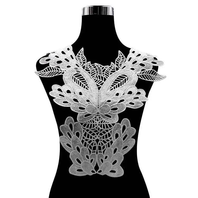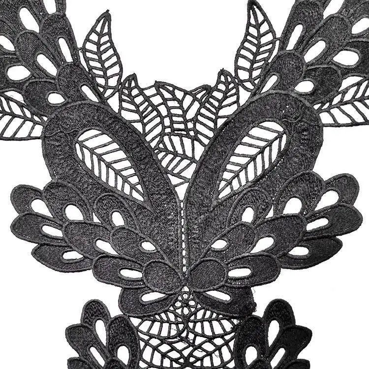 Высокое качество Белый Черный Вышивка тканей Venise кружева Воротник отделка декольте аппликация платье Гипюр шитье корсаж Патчи Свадьба 2019