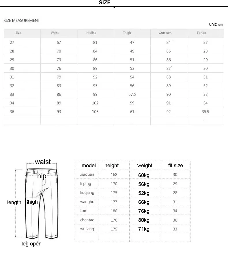 Таблица размеров