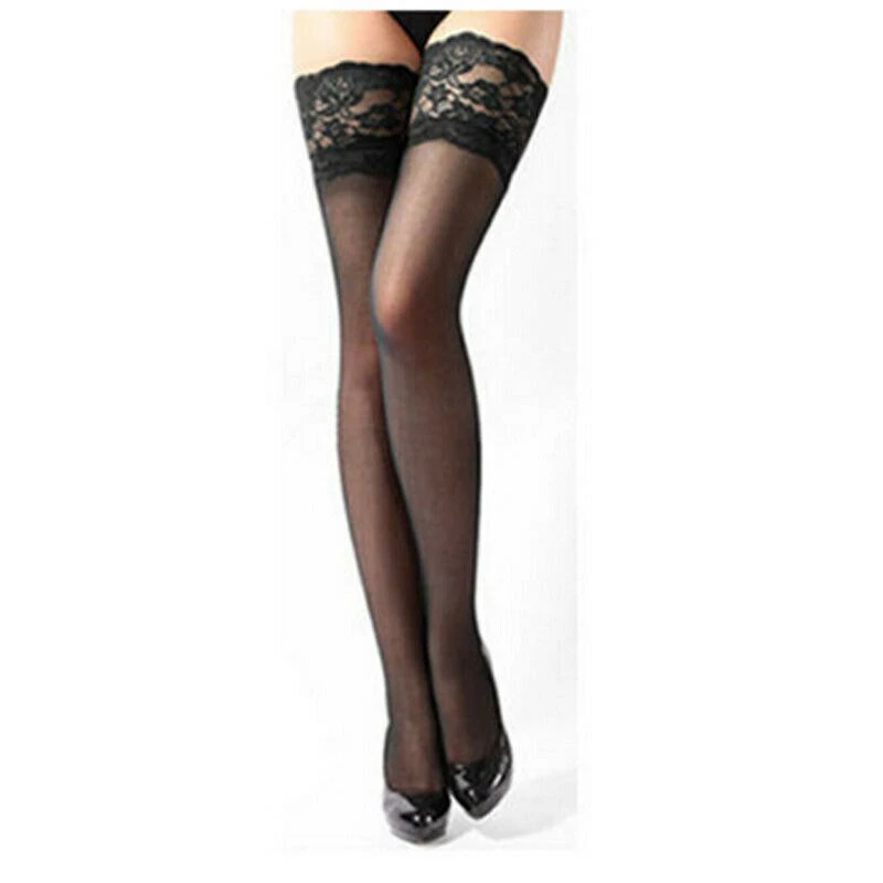 Чулки размера плюс прозрачные до бедра кружевной топ силикон 165-275 фунтов