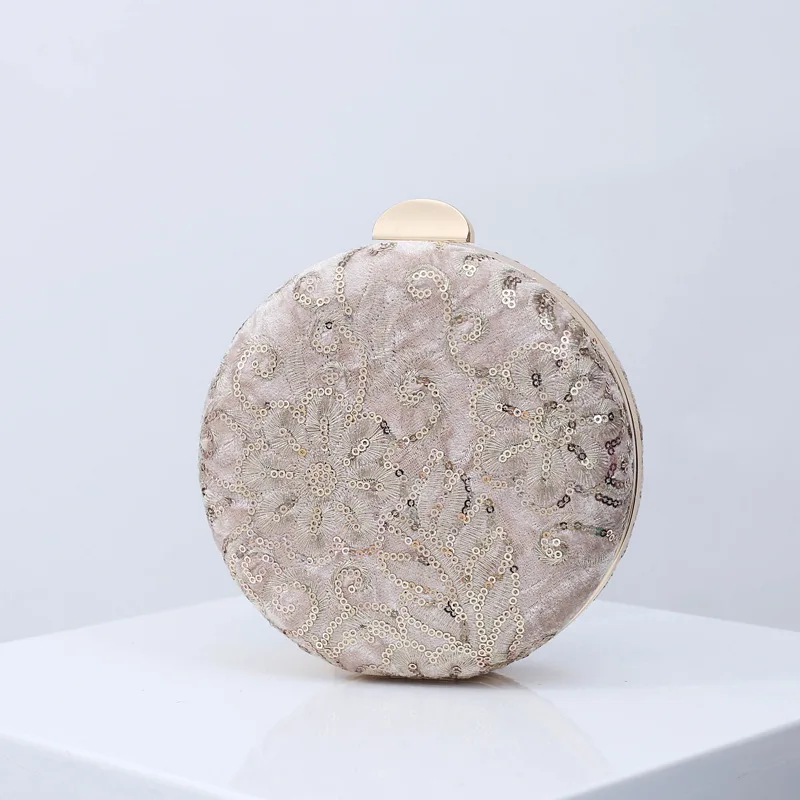 Велюровые вечерние сумки круглой формы, клатч с цепочкой, маленькие сумочки для свадебного банкета, вышитые цветочные клатчи, сумочка в стиле ретро