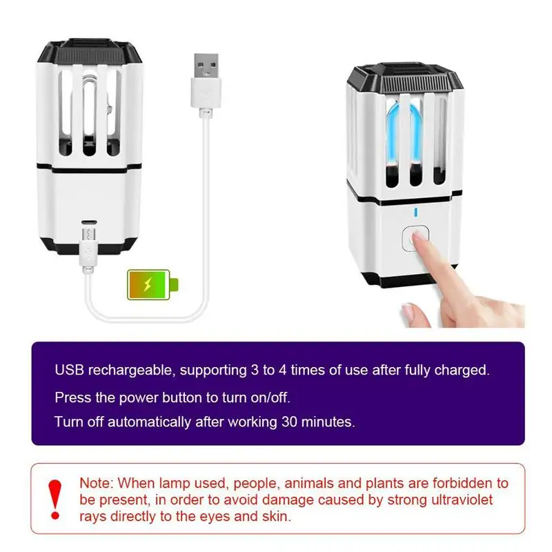 Примечание: При использовании лампы людям, животным и растениям запрещено присутствовать, чтобы избежать повреждений, вызванных сильными ультрафиолетовыми лучами, непосредственно на глаза и кожу.