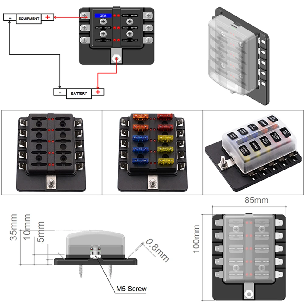 - It is very simple and convenient to separate the 10-terminal terminals from the fuse box to connect the positive terminals of different consumers.