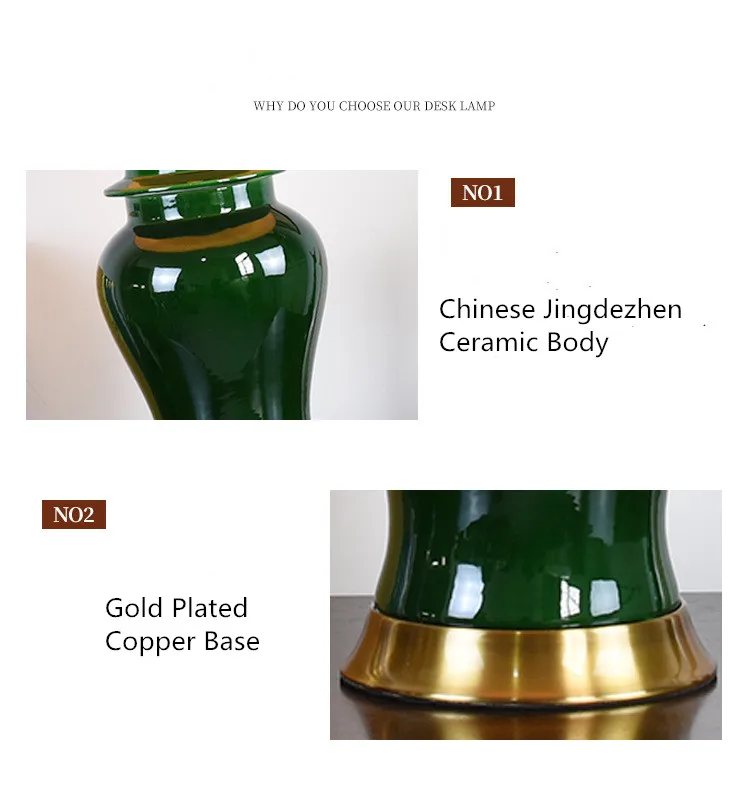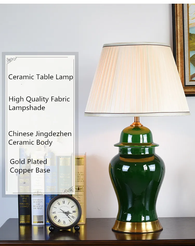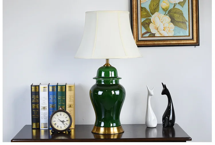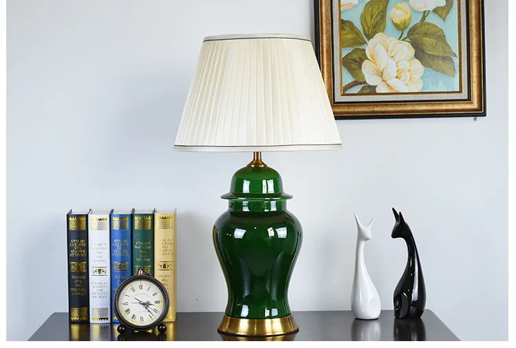 American Style Green General Ceramic Table Lamp For BedRoom Bedside Living Room Foyer Study Desk Reading Night Light TD034