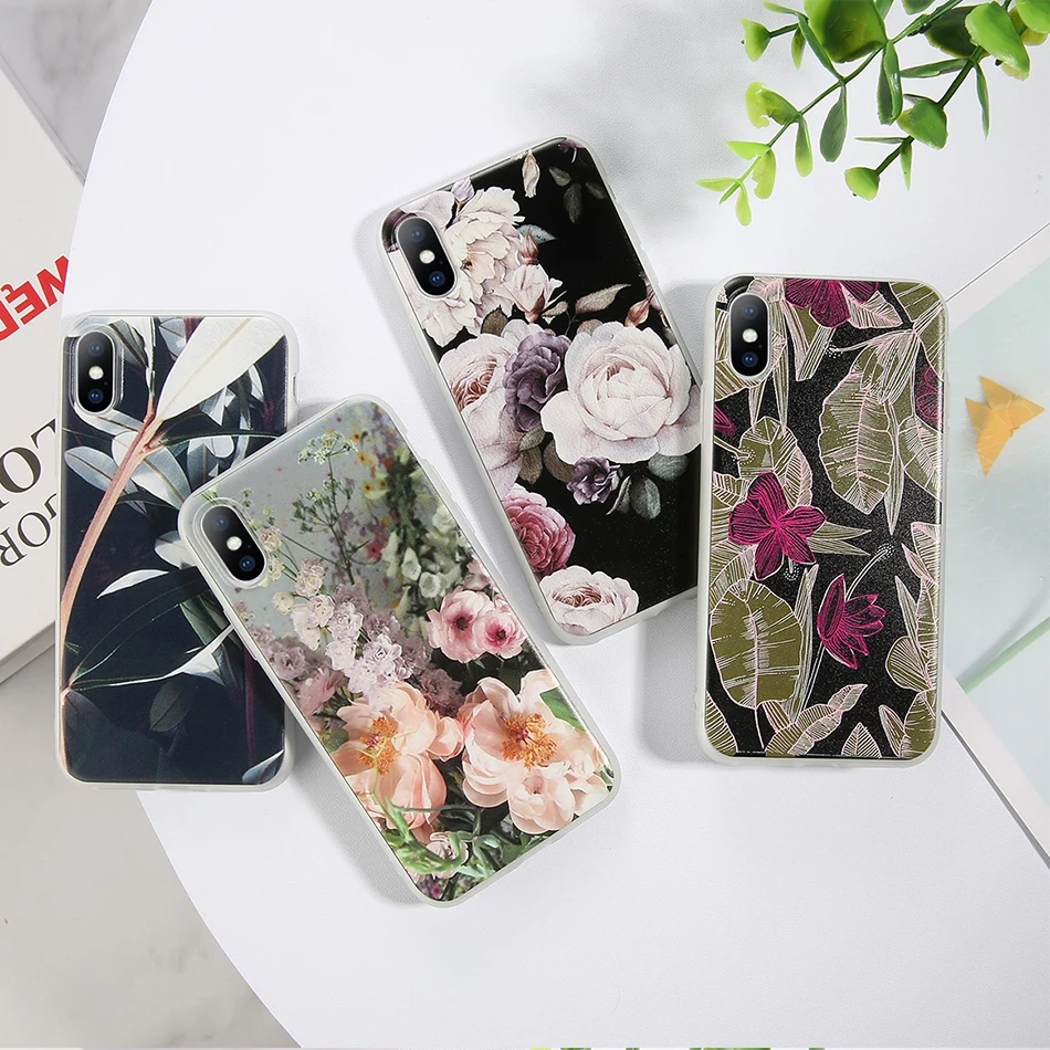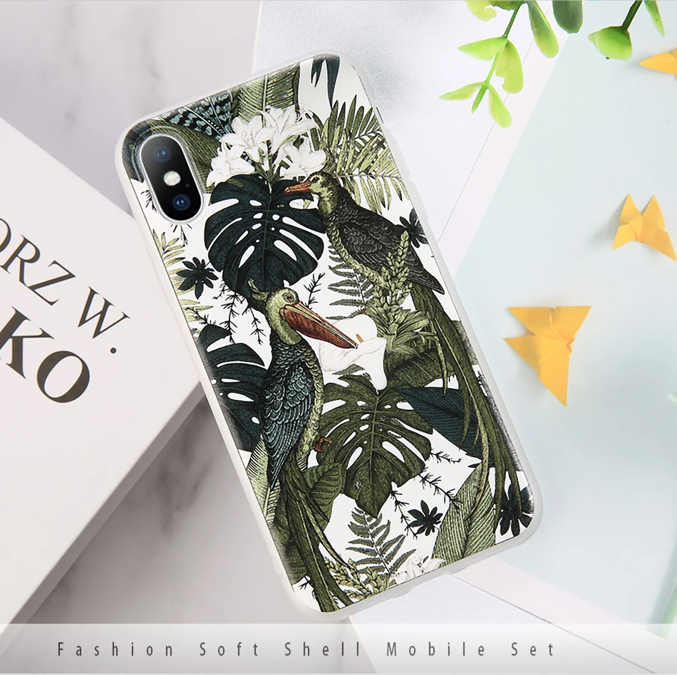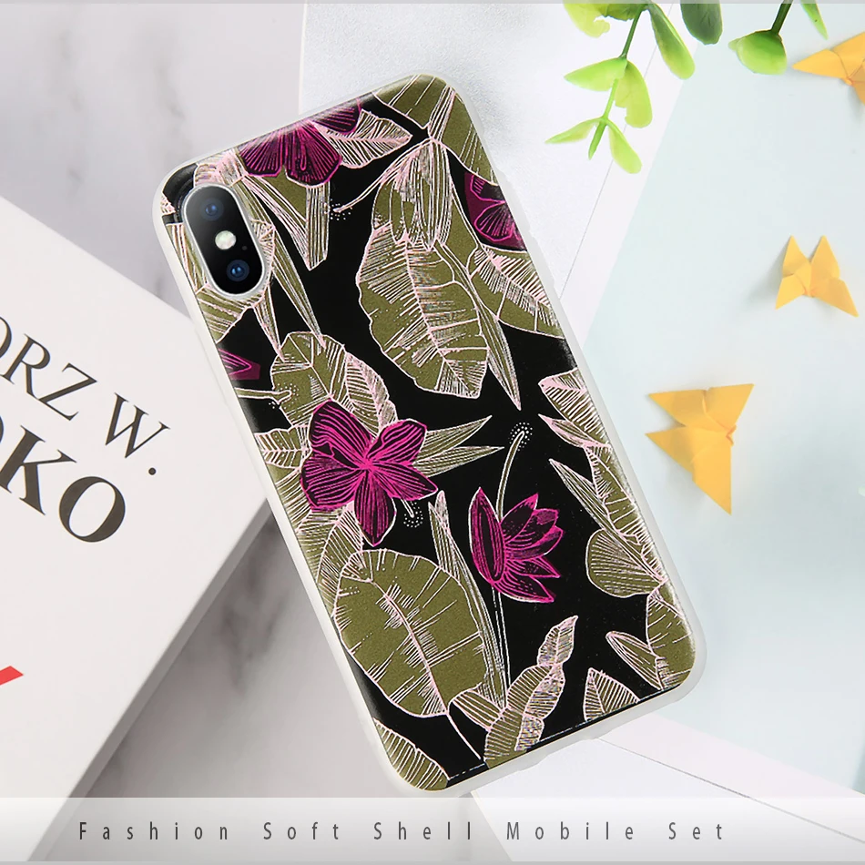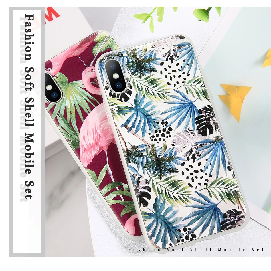 USLION Flamingo Flower Leaves Cases Cover For iPhone X XR Xs Max Soft TPU Silicone Phone Case For iPhone 6 6s 7 8 Plus 5 5s SE