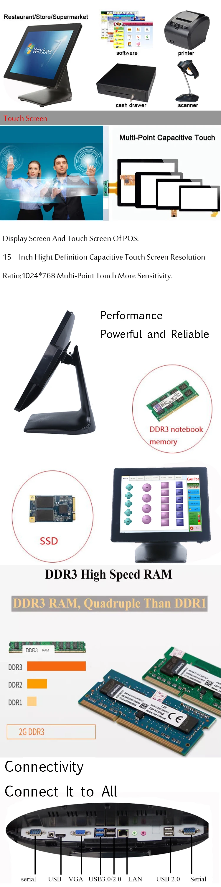 Дополнительные периферийные устройства | Дисплей клиента VFD, принтер, кассовый ящик, сканер, WiFi, |