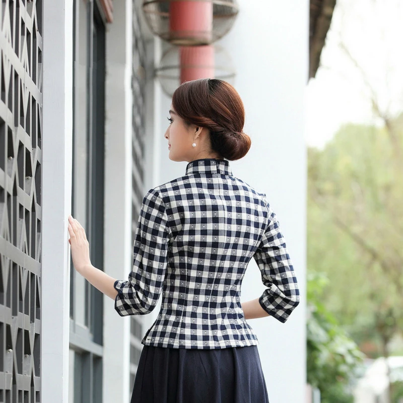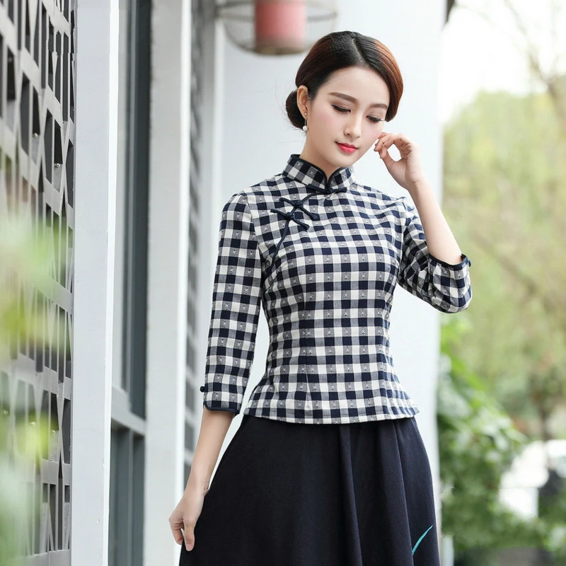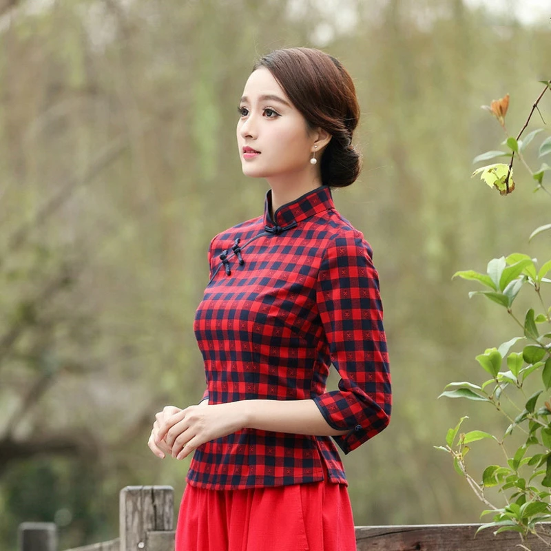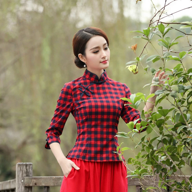 Традиционная китайская блузка футболки для женщин воротник стойка восточные