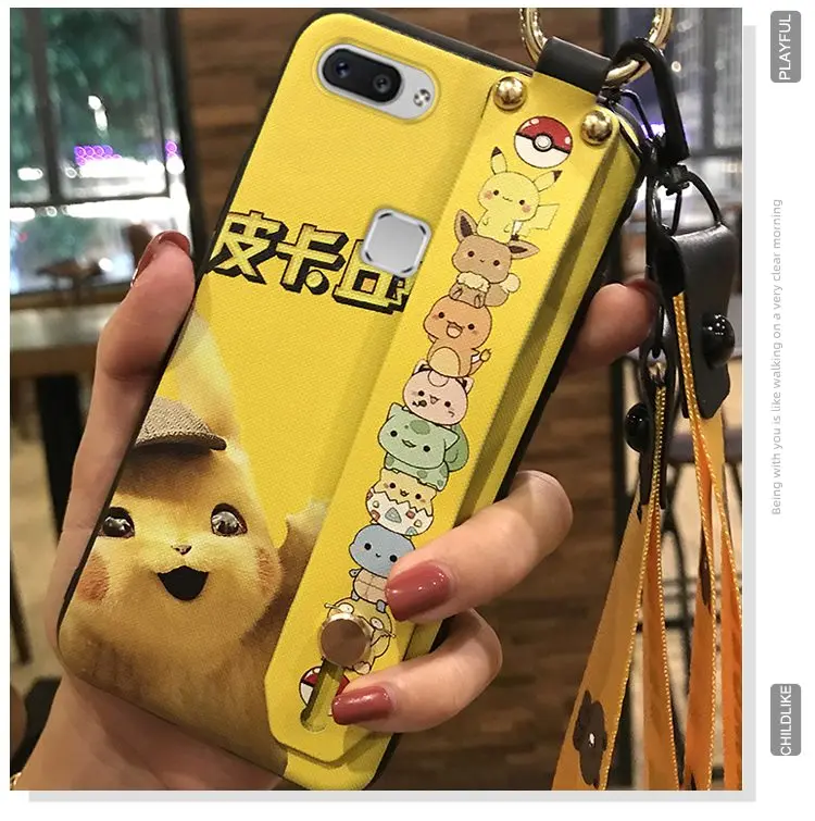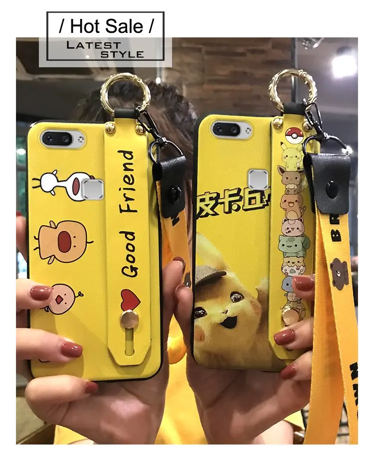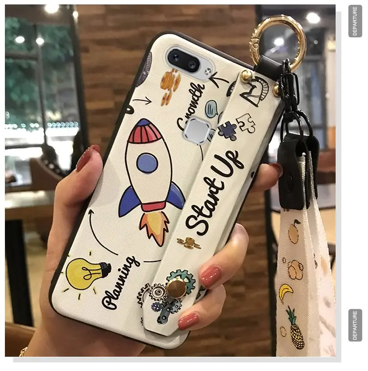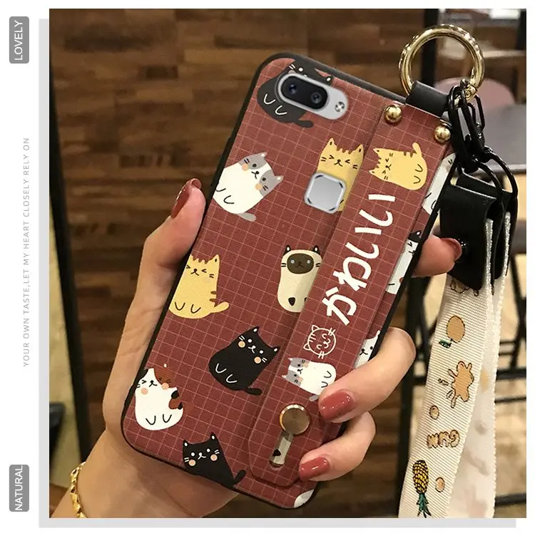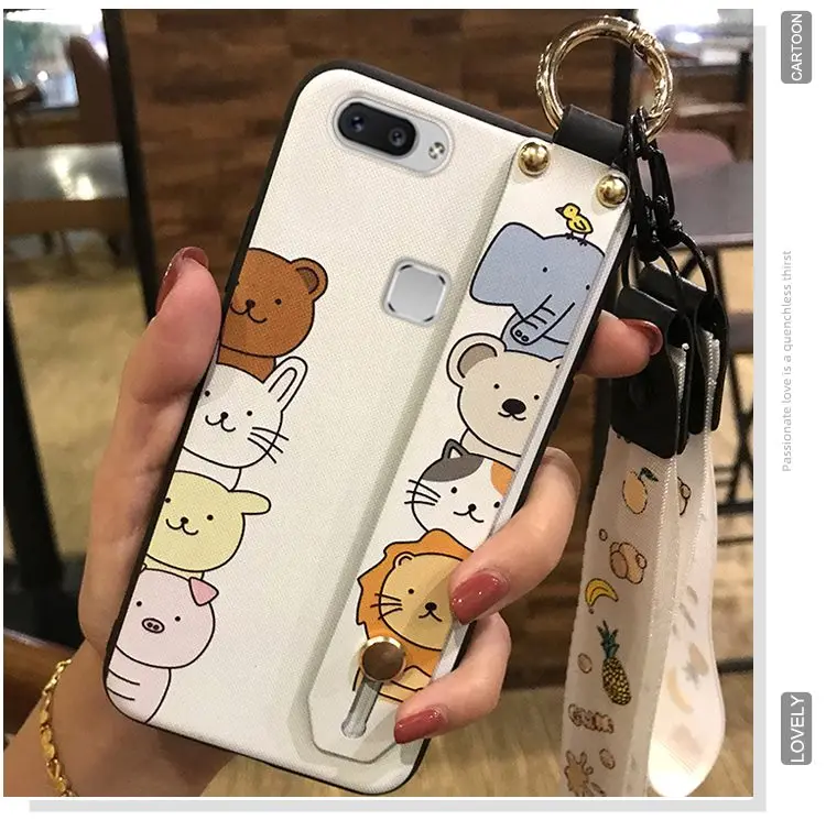 Чехол для телефона с ремешком для Vivo X20 / X20 Plus, ударопрочный Тонкий силиконовый чехол из ТПУ с милым мультяшным держателем для телефона