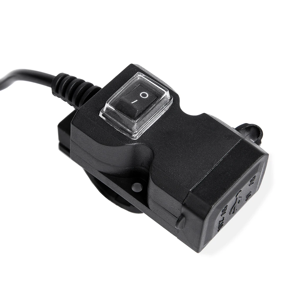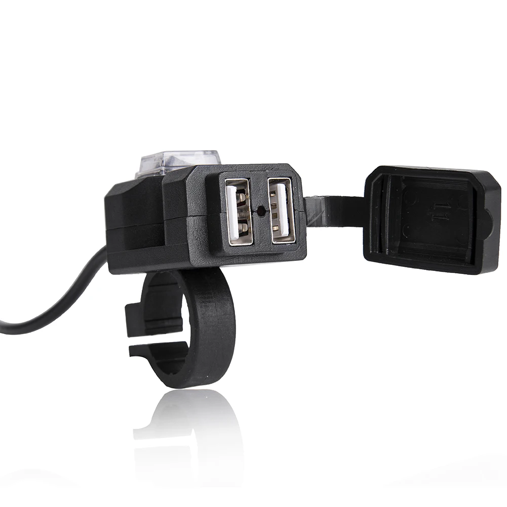 - Waterproof Dual USB 9V-24V Motorcycle Handlebar Charger Socket with Switch & double Mounts. - Super Worthy of Your Choice!!! - The USB power supply socket, is adapted to charge for iPhone, iPad, iPod, Samsung, smartphones, GPS, digital cameras, MP3/MP4 players, Bluetooth speaker and any other USB- powered devices. - Made of top chip, high-class ABS and PVC materials, intelligent hardware configuration with quick disconnect and over- current protection, this product is well processed and quality assured, super worthy of your choice! - Dual USB jack, you can simultaneously charge the phone for two. - Dual USB port integration, USB waterproof cover.