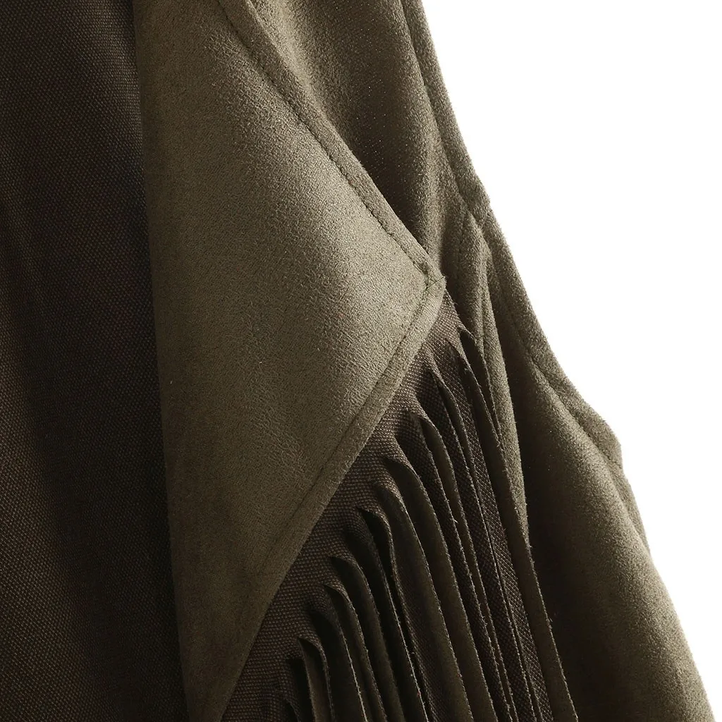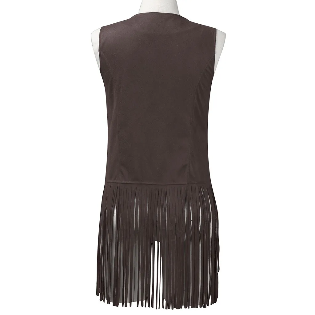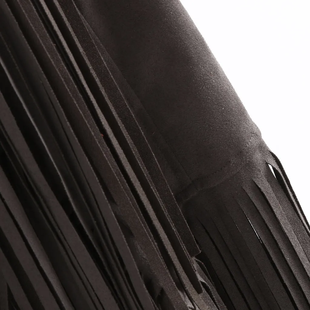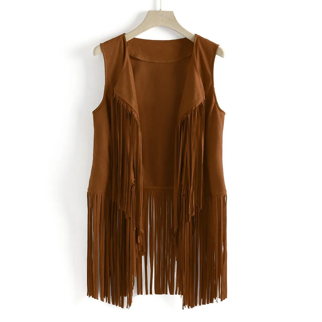 Женский осенне-зимний замшевый кардиган с бахромой без рукавов в этническом стиле