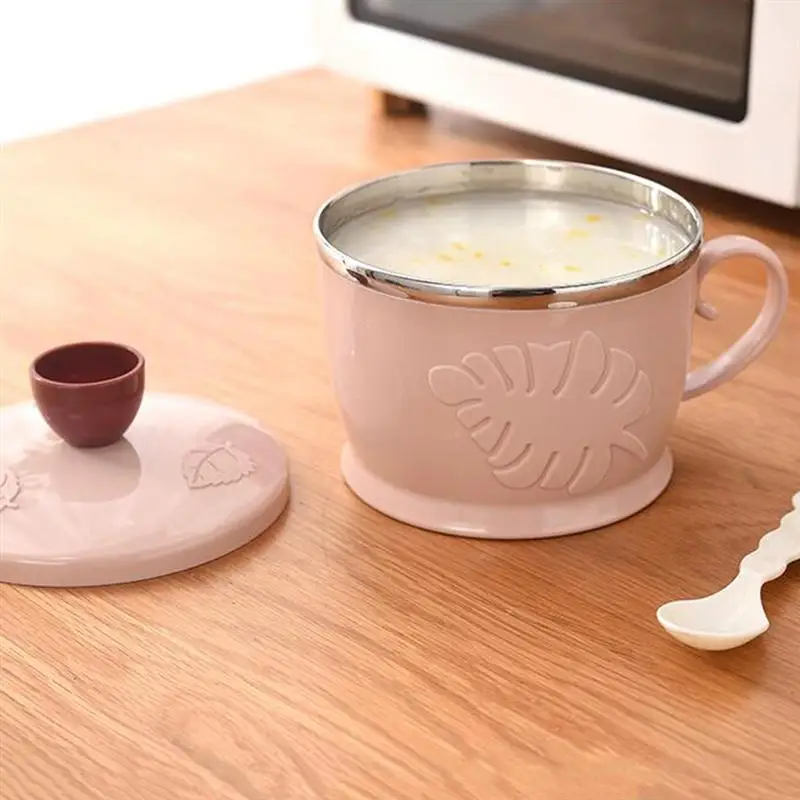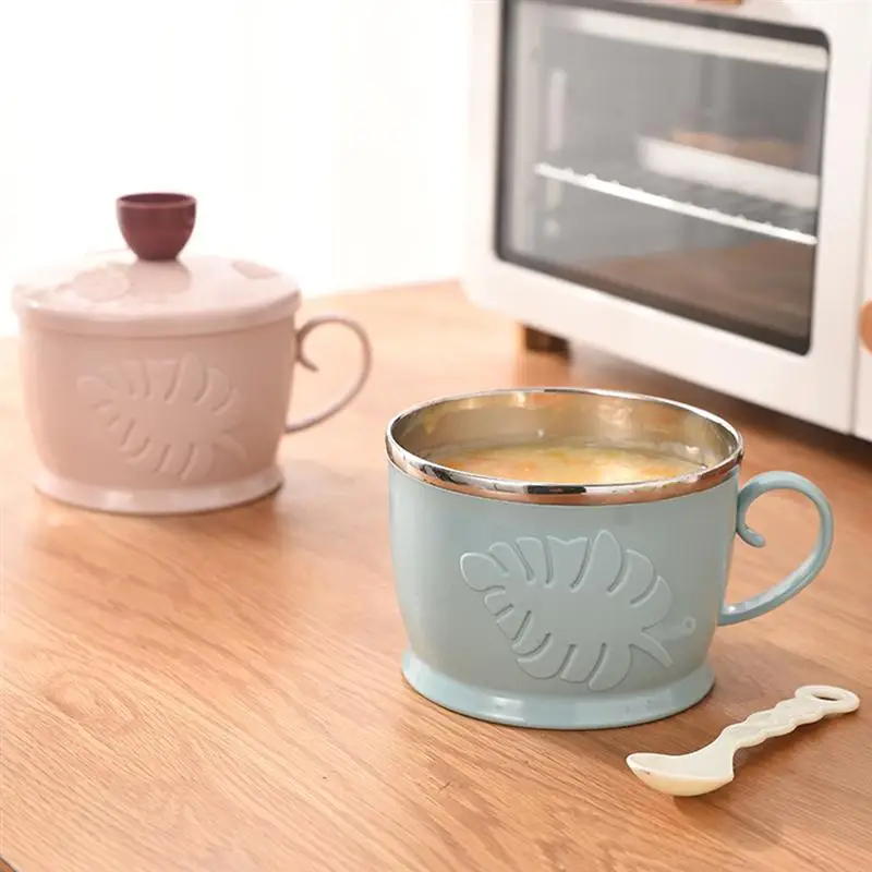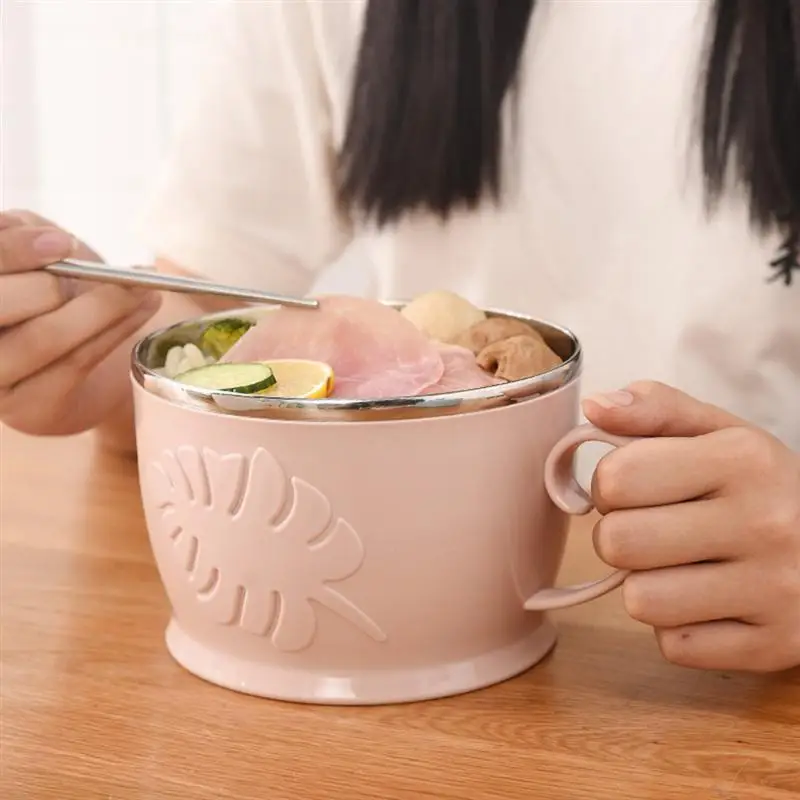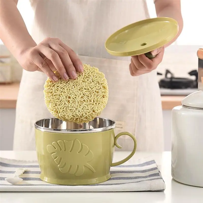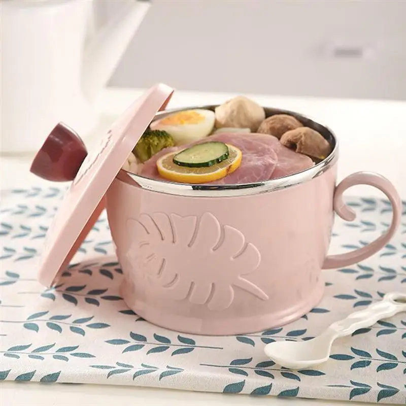 Двухслойная миска для лапши из нержавеющей стали, Ланч-бокс с ручными крышками, большая емкость, контейнер для еды, посуда