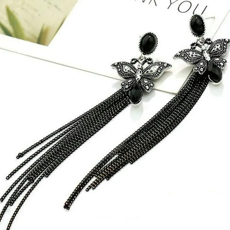 1 пара Бабочка кисточкой серьги-подвески в форме капли из нержавеющей стали кисточкой серьги для женщин вечерние ювелирные изделия