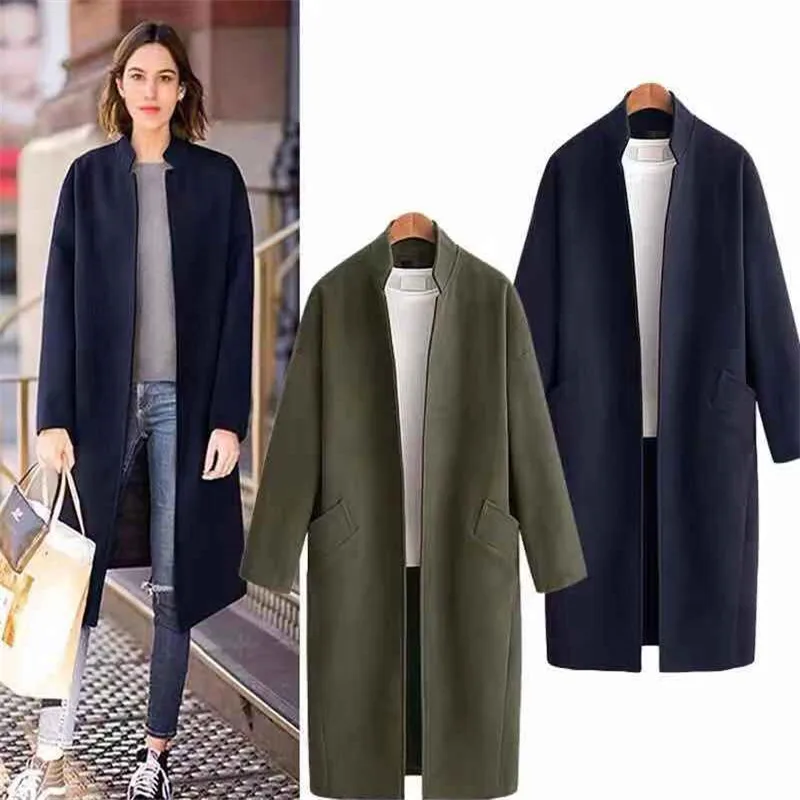 2019 женское Шерстяное модное осеннее зимнее однотонное пальто с длинным рукавом и стоячим карманом размера плюс кашемировое шерстяное Женское зимнее пальто