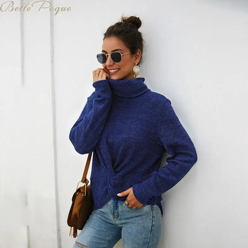 * Описание товара: женские свитера пуловер осень зима новый Высокий воротник с длинным рукавом на шнуровке сплошной цвет