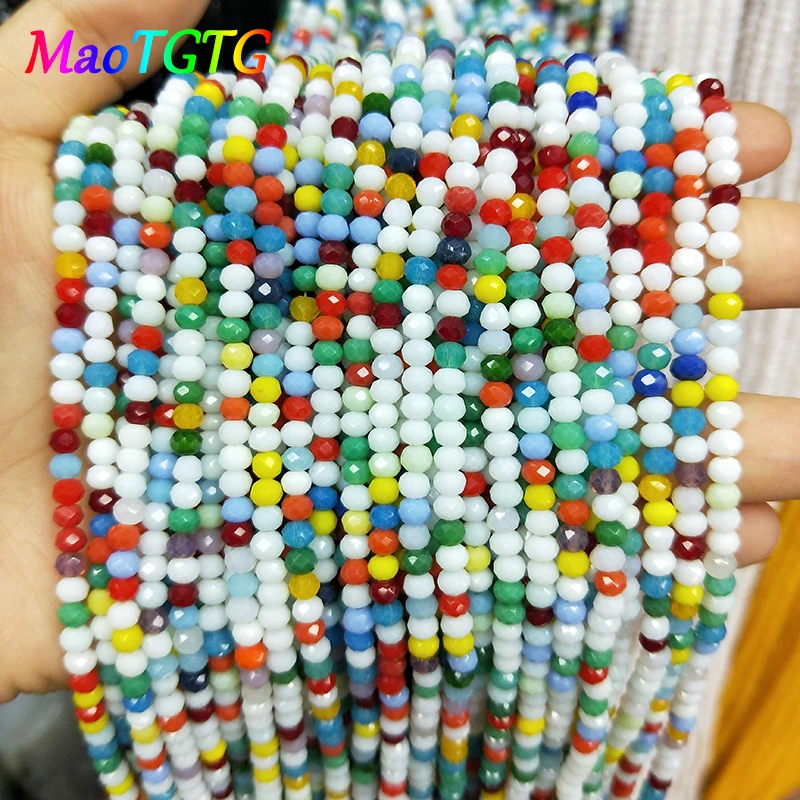 Многоцветный в виде граненых стеклянных бусины для изготовления ювелирных изделий браслет ожерелье 4 мм Ограненный Кристалл бусины оптовая продажа