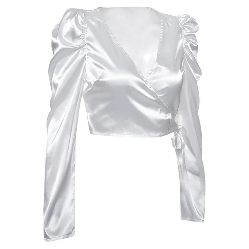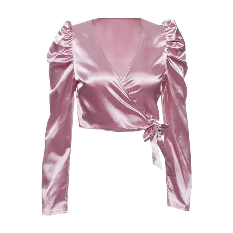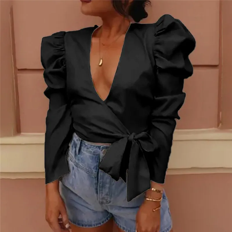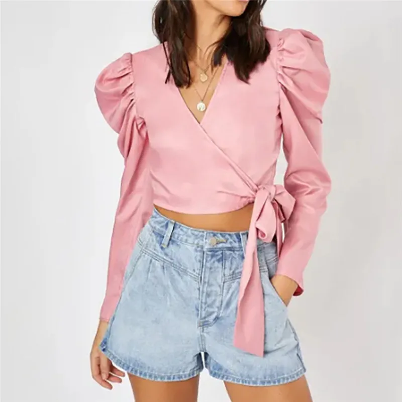 1. Особенности: модные женские топы, однотонные, бант, фонарь с длинным рукавом, бандаж, v-образный вырез, топы.