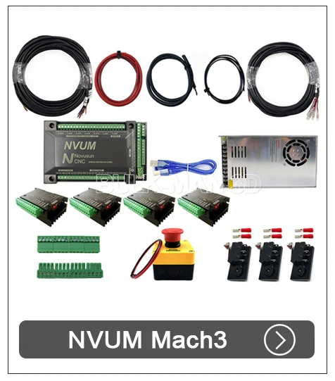 The NVUM system controls 4 axis and is compatible with Mach3 or DrufelCNC. The NVUM system has been used for years and has many online forums about it. The NVUM system uses external genuine TB6600 Stepper Drivers suitable for High Torque Stepper Motors.