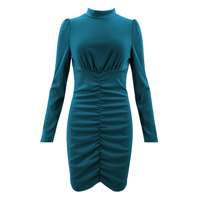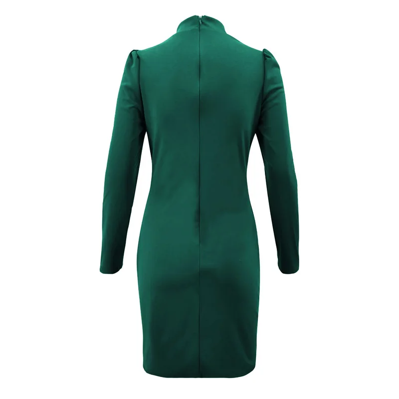 Сексуальное женское платье с высоким воротом зеленое Бандажное облегающее платье Vestido de Fiesta Noche короткое платье с длинным рукавом Клубное диско платье MC-2926