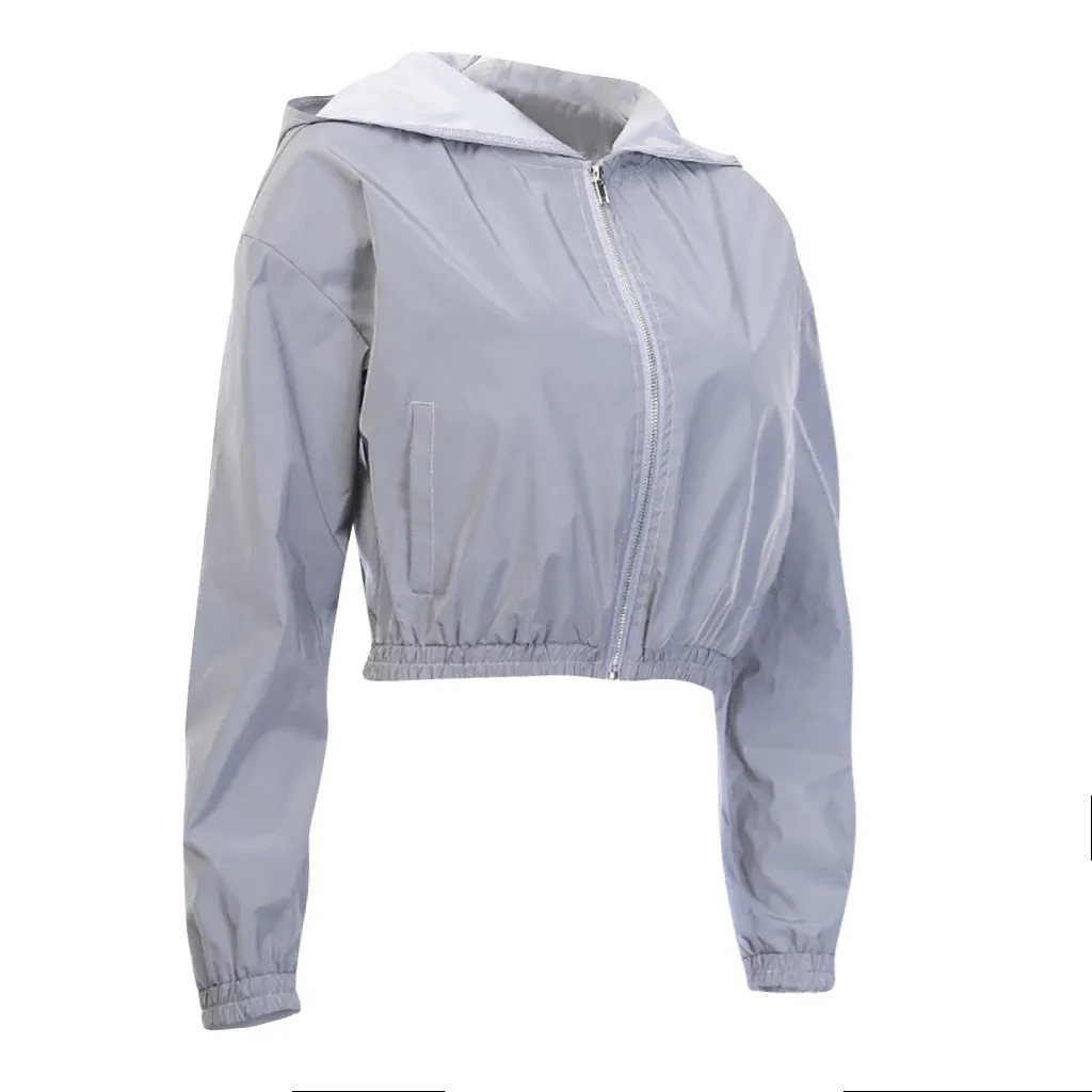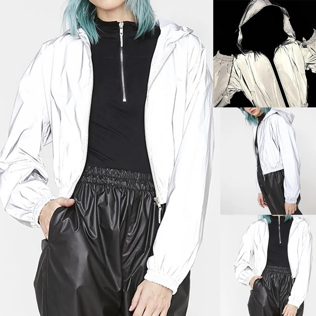 Женская модная уличная трендовая шляпа на молнии, светоотражающие короткие пальто с длинным рукавом, топы