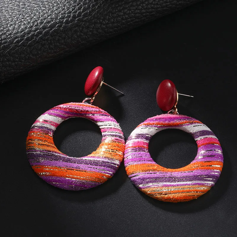 Name :Bohemian Ethni Colorful Fabric Earring Retro Exaggerated Hollow Creative Women Handmade Vintage Statement Drop Earrings brincos Material: Zirc Alloy&Fabric Size: as picture Length:as picture Color: Colorful Package: OPP Bags.