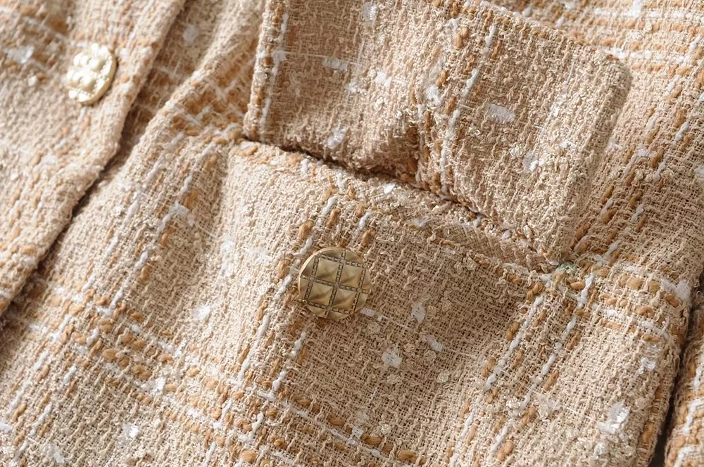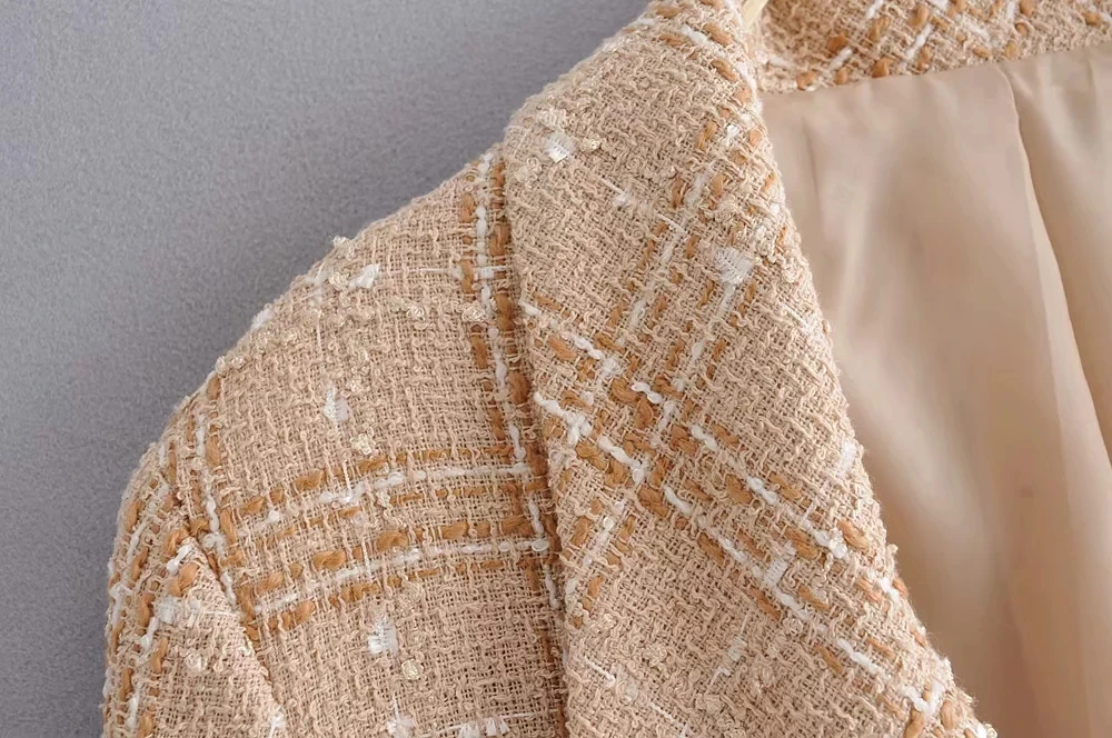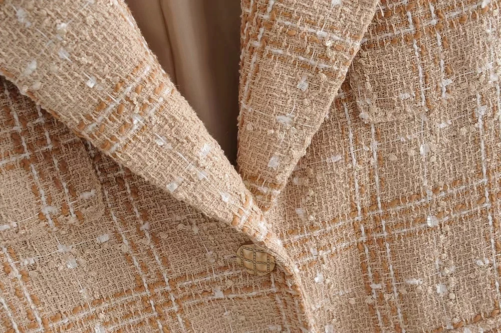Элегантное женское твидовое клетчатое пальто, модная Офисная Женская однобортная повседневная куртка в винтажном стиле, женская верхняя одежда для девочек, 2019