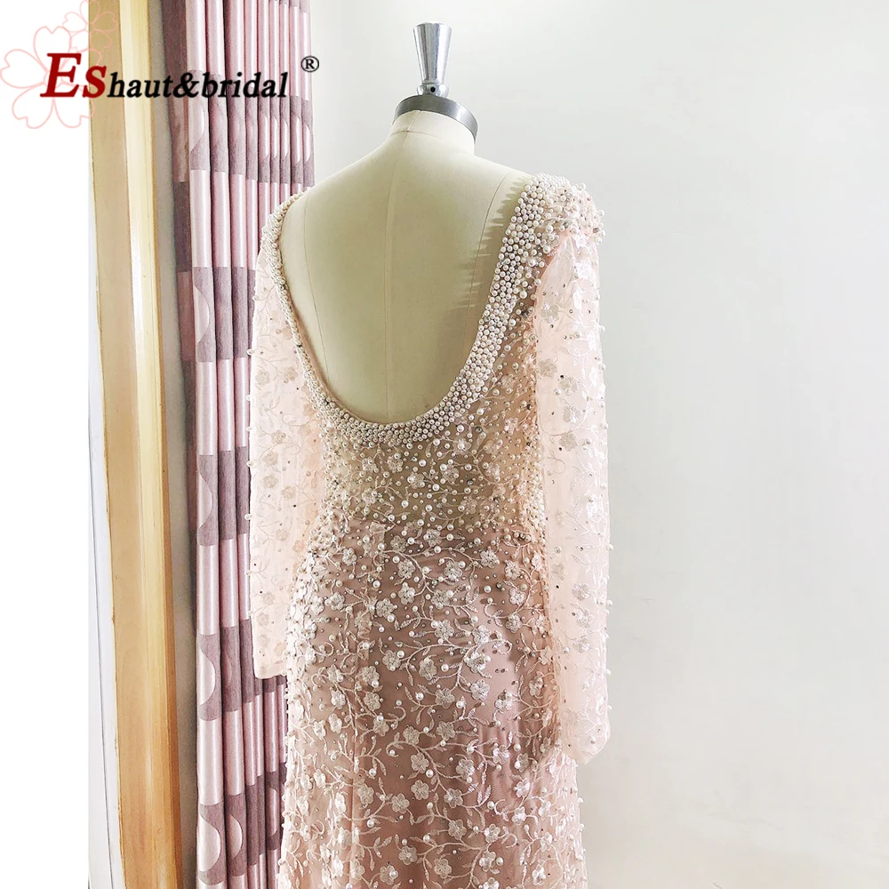 Черный мусульманские Вечерние платья с глубоким круглым декольте цветы