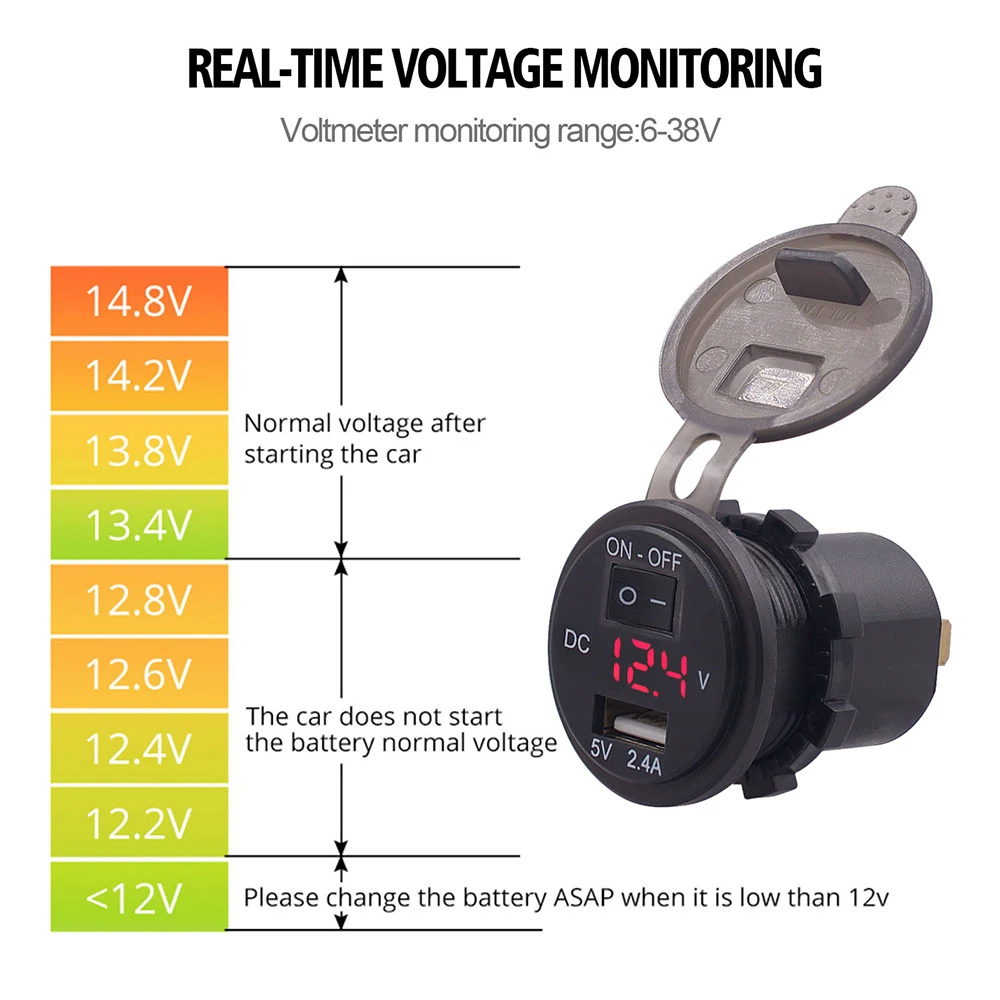 The meter has easy to read LED segments and connect to your 12 volt system.