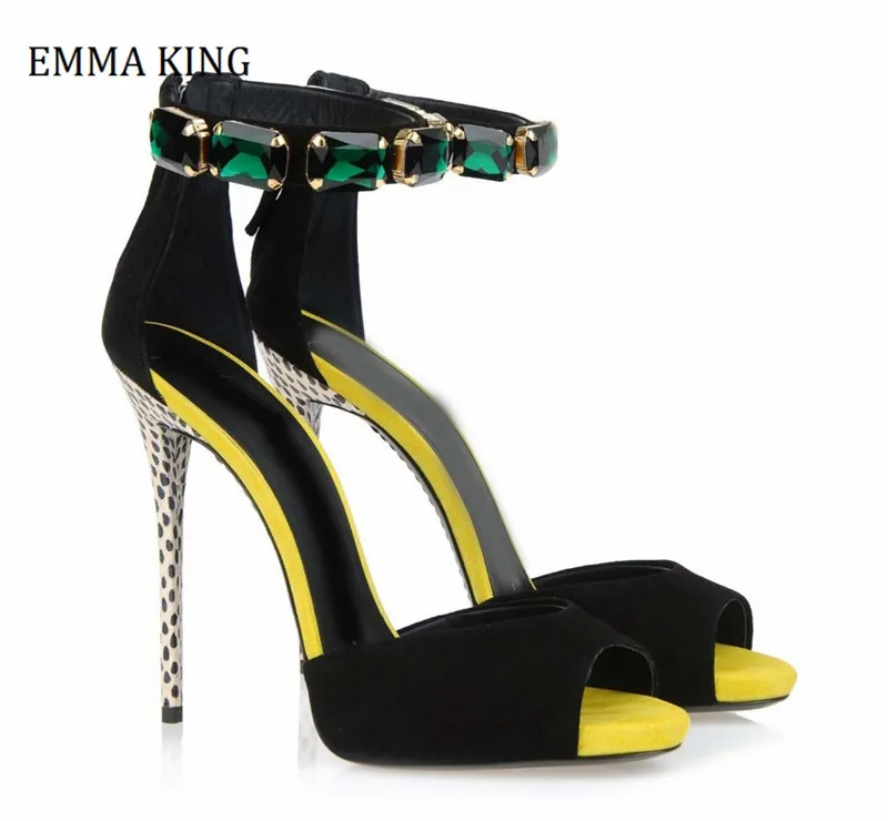 -Crystal Embellished Suede Peep Toe Sandals -Heel height:10cm/12cm -Material:Suede Leather -Lining Material:PU Leather -Outsole Material:Rubber -Embellishment:Crystal,Peep toe -Take your look to the next level with this sexy sandals, which is available in joker colors, sexy stylish a perfect finishing touch to your next outfit, whether you're partying at the club, on a date, or celebrating a special occasion! -Suitable for summer/autumn /spring -Occasion:Casual,Party,Dress,Business,Evening -Time to market:2020 summer