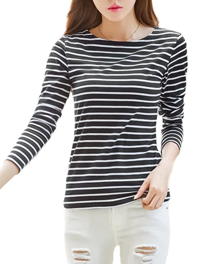 Должна быть одна полосатая футболка с длинными рукавами, подходящая для большинства вещей. Принт в полоску и круглый вырез придают классический и элегантный вид. Для части, работы или праздника, это разумный выбор. Возьмите его, и он никогда не подведёт вас.