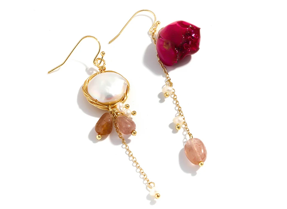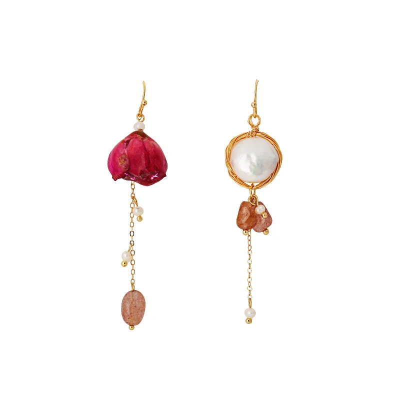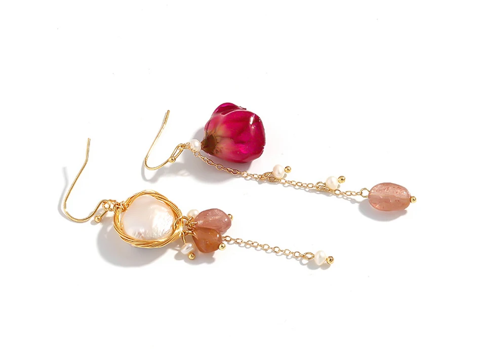 The pearls of this earring are natural pearls. The flower are also Real dried flower.