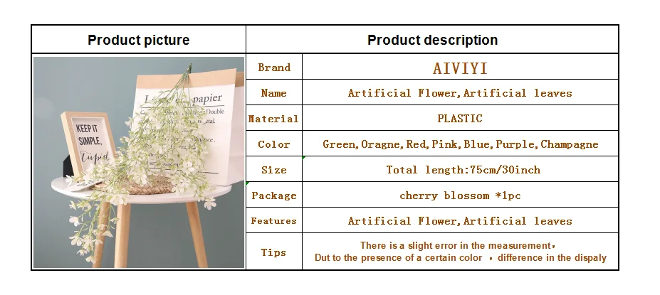 Note: • No color fading and no flower drop off. • Perfect decorative flowers for bedroom, drawing room, hotel, desk, etc. • The actual color of the item may be slightly different from the pictures shown caused by many factors such as brightness of your monitor and light brightness. • Please allow slight deviation for the measurement. • Maybe little flower drop off for delivery, just plug on to the branches. Then it will be OK! Please read carefully and think about this before shopping. • other description:Because every branch is too long, we will bend them for package.When you receive the product, straightened it! It won't affect the appearance! ![]()