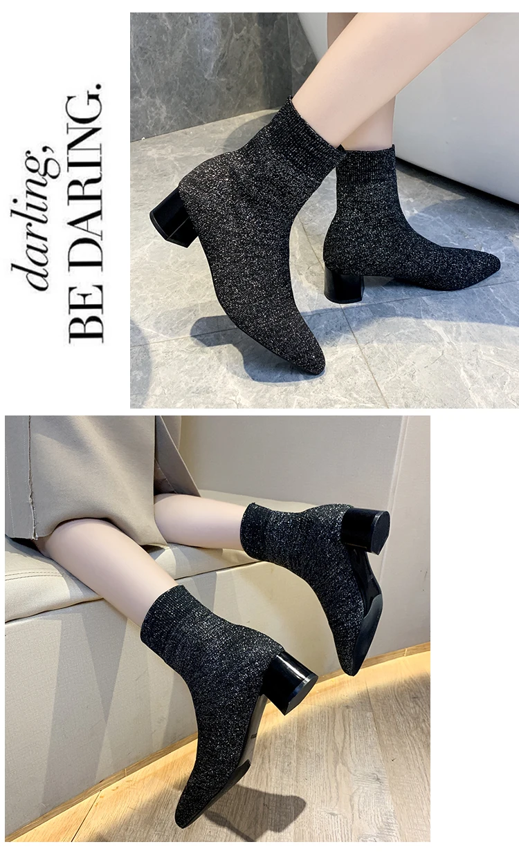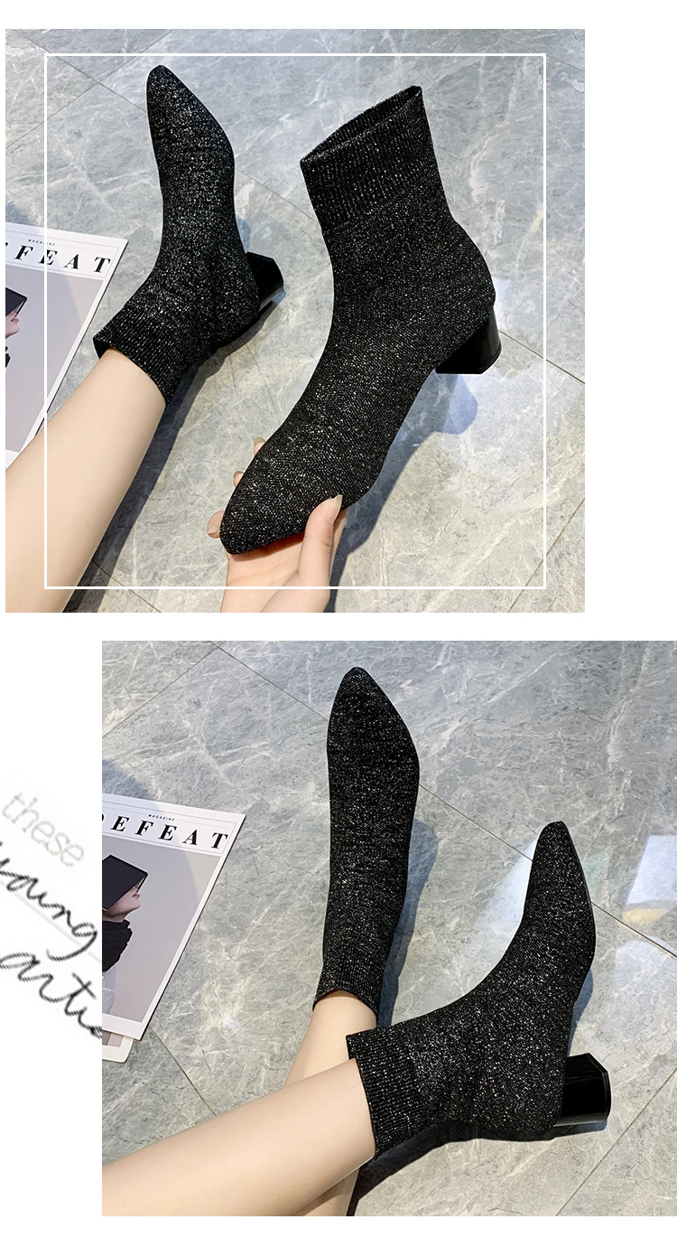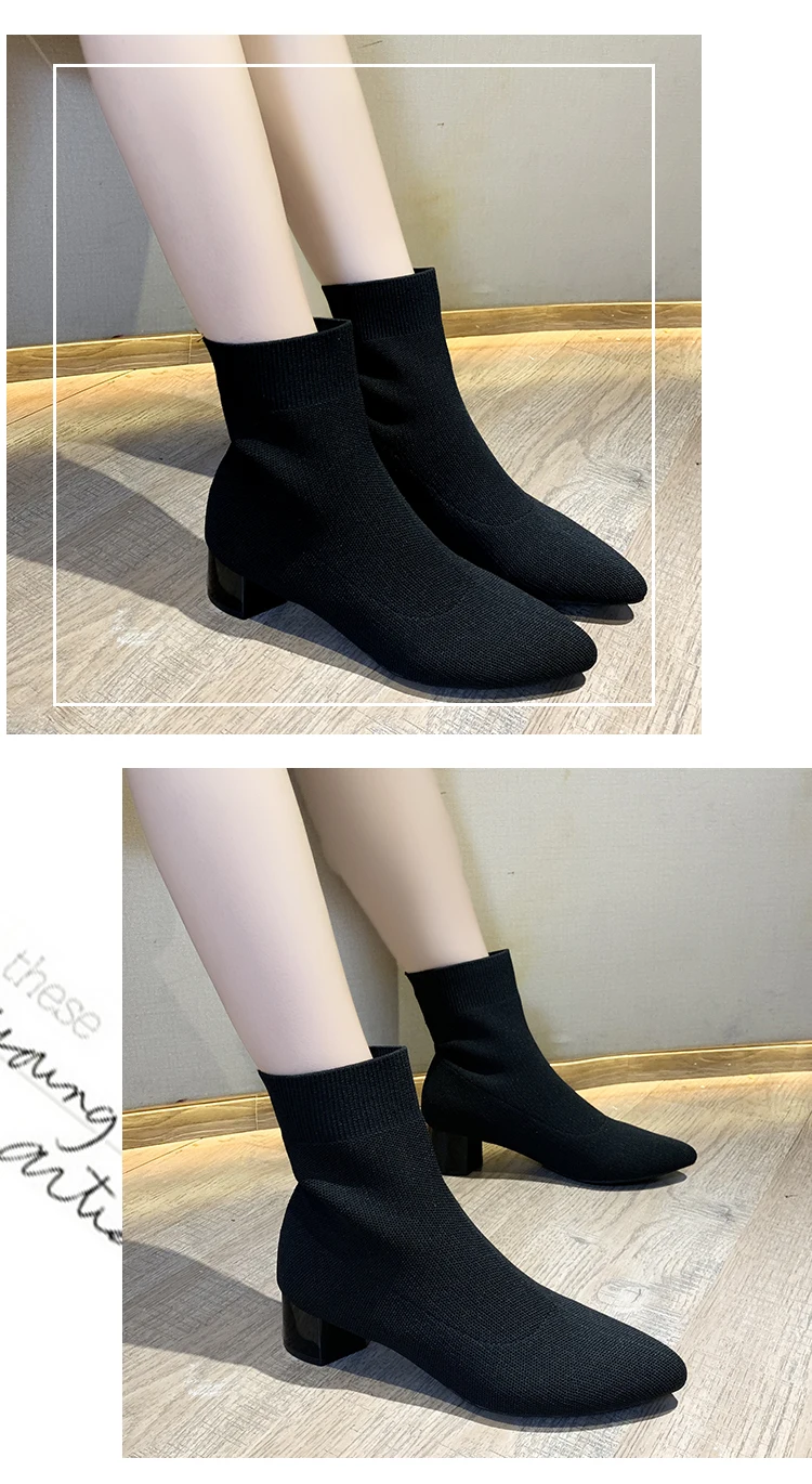 Ботинки женские весенне-осенние однотонные новинка 2019 вязаные эластичные