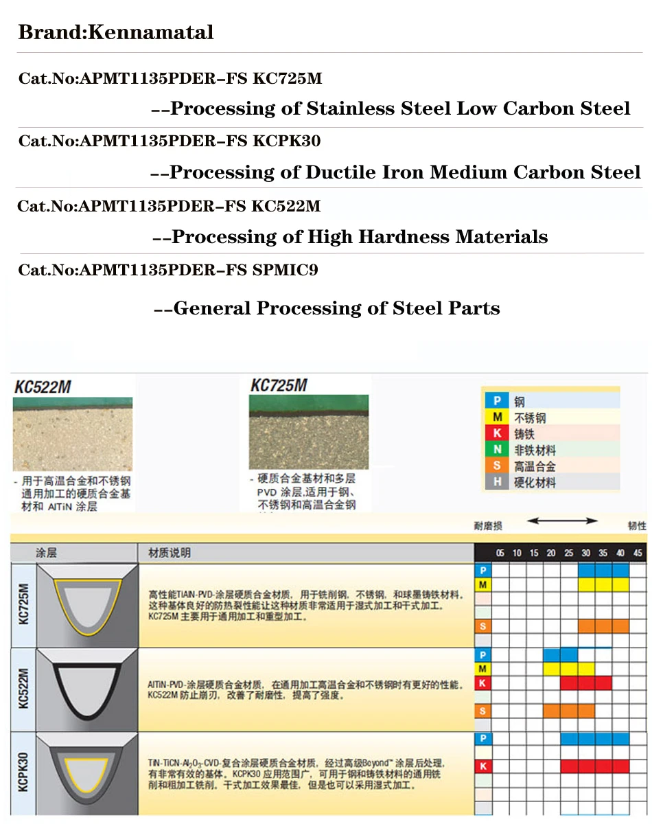 Фрезерные Вставки kennametal APMT1135PDER KC725M SPMIC9 KC522M KCPK30 из нержавеющей стали с высокой