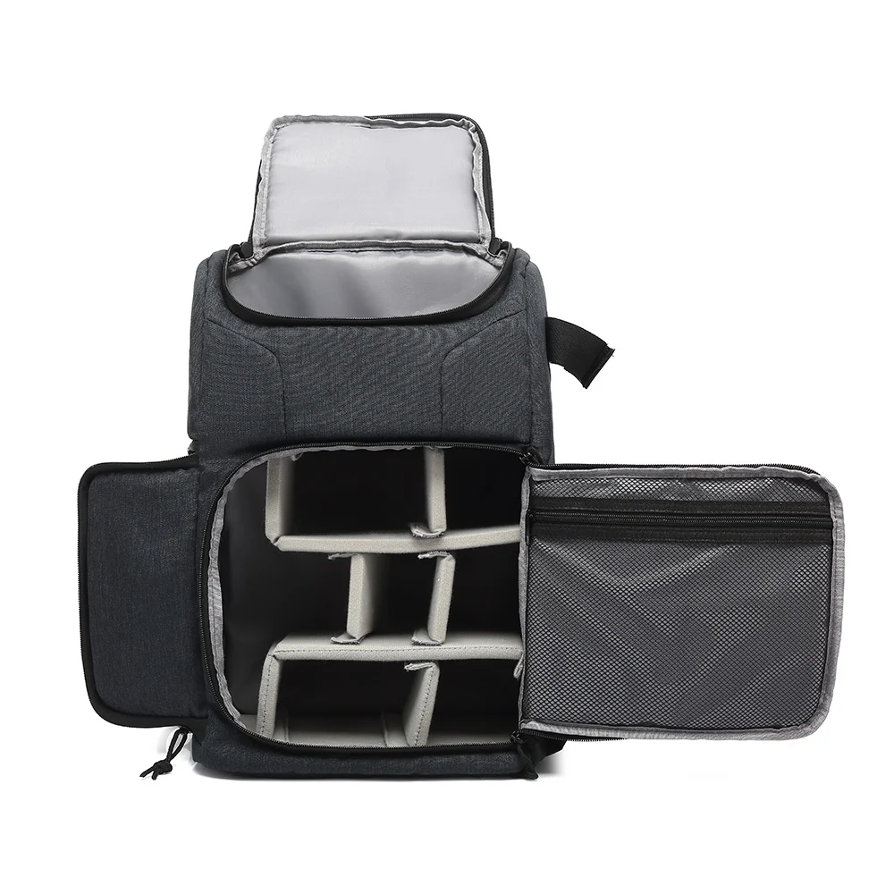 Рюкзак камеры является многофункциональным для хранения ваших камер, аксессуаров, компьютера, бутылки воды и других мелких вещей. Водонепроницаемый материал и большая емкость, ранец подходит для улицы или путешествий. Также его можно зафиксировать на удочке чемодана для заднего ремня.
