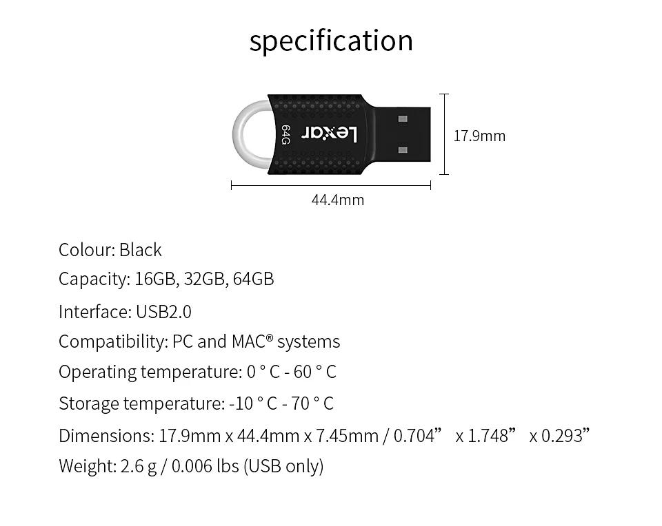 Описание: Храните ваши любимые файлы с собой на маленьком и очень портативном Cruder Fit USB флэш-накопитель. Это легко, как можно, все на Lexar флэш-накопителе сделано, чтобы держать в кармане. Храните ваши данные в безопасности от глаз с включенным программным обеспечением SanDisk для безопасного доступа. Когда ваши бизнес-данные имеют значение, вы можете довериться Lexar. Основные Особенности: Емкость памяти 16 Гб/32 ГБ/64 ГБ Высокоскоростной USB 2,0 Хранение для ноутбуков, игровых консолей, аудио в автомобиле и многое другое Ограниченная гарантия на 5 лет Рабочая температура: 32-113 ° F (0-45 ° C) Температура хранения: 14-158 ° F (-10 °-70 ° C) О TF карта с фактическим объемом 16 Гб = приблизительно 14-15 ГБ 32 Гб = приблизительно 28-30 Гб 64 ГБ = приблизительно 58-60 Гб Это разница в расчетах между производителем и вашим ПК, пожалуйста, Google «емкость карты памяти», чтобы получить больше информации. На вашем ПК указано, что 1 ГБ = 1,073741824 млрд байт, где рынок определяет 1 ГБ = 1,00 млрд байт. Стремление идеального человека не рекомендуется покупать. Посылка содержание: 1 * оригинальный Lexar USB флэш-накопитель с розничной упаковкой
