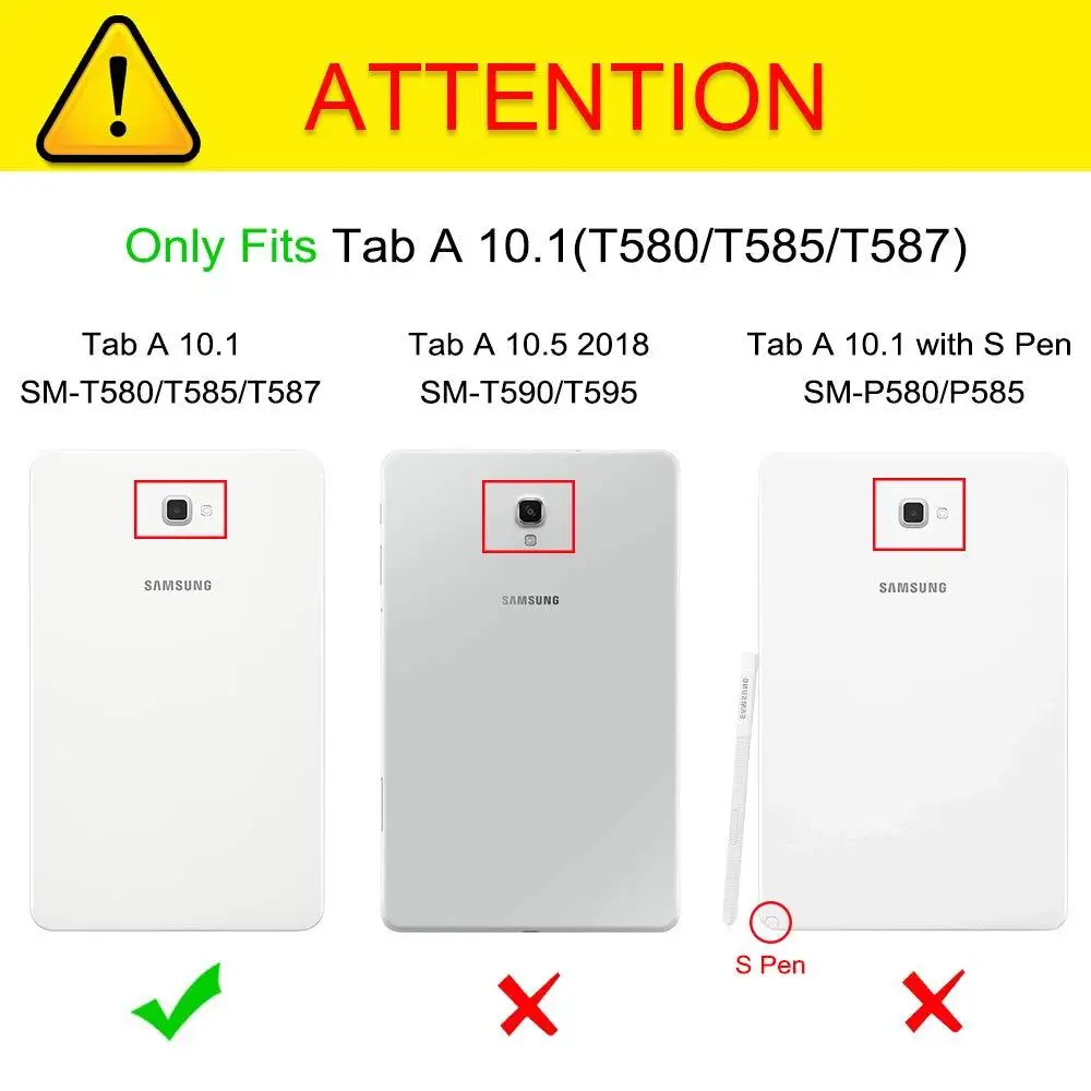 1. Чехол идеально подходит для Samsung Galaxy TAB A 10,1 модель NR: T580 / T585 планшеты (2016) [Обратите внимание, что чехол не подойдет к любому другому планшету Samsung, включая планшеты Samsung TAB 10 "предыдущего поколения]