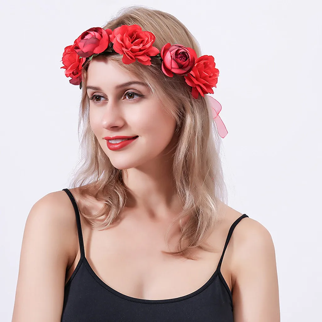Женская Цветочная повязка на голову венок Корона Цветочная Свадебная Гирлянда Свадебный ободок для волос