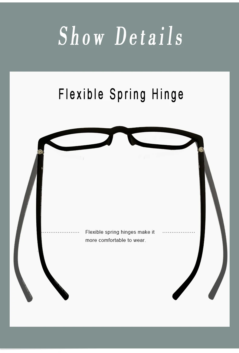 Spring Hinge Frame: ultra-light and flexible resin frame material for durability and comfortable long-term wearing; Casual frame design keeps you looking professional and stylish while working or playing video games