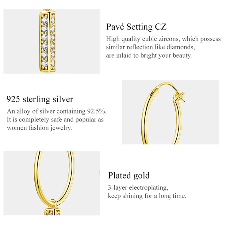 Название: в виде геометрических фигур Тип изделия: Серьги Размеры: 3,7 см * 2 см Материал: Стерлинговое Серебро 925 пробы + позолота + прозрачный фианит Описание: простая и уникальная геометрия в сочетании со стильным цирконом, Изысканная мода будет светильник особенным для вас.