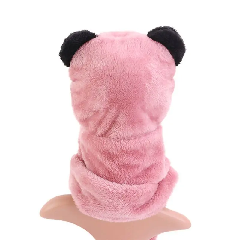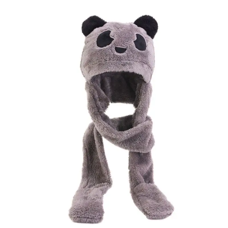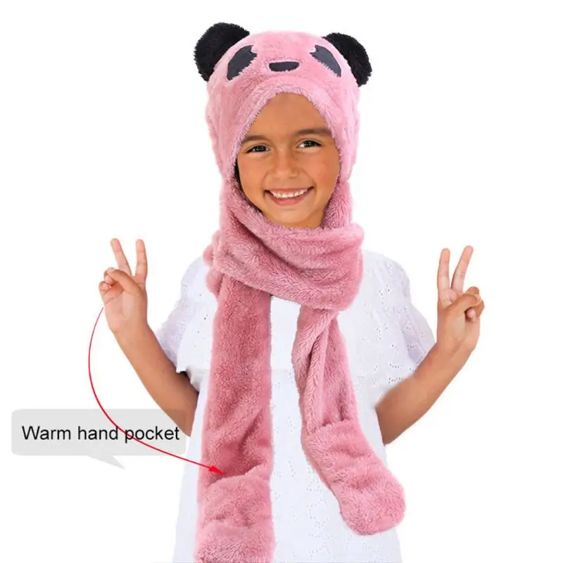 В комплекте шапка с милыми ушками-помпонами в виде панды и медведя, длинный шарф и перчатки с карманами, удобно носить или снимать.