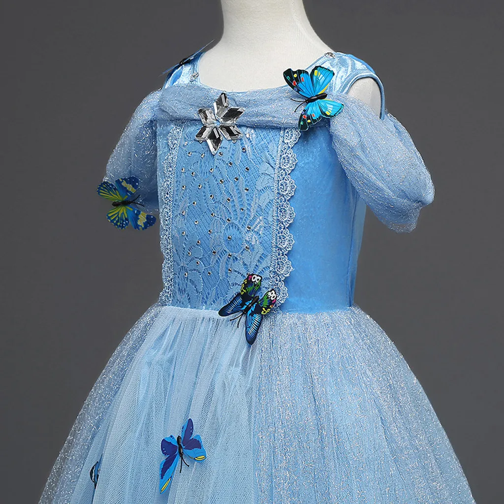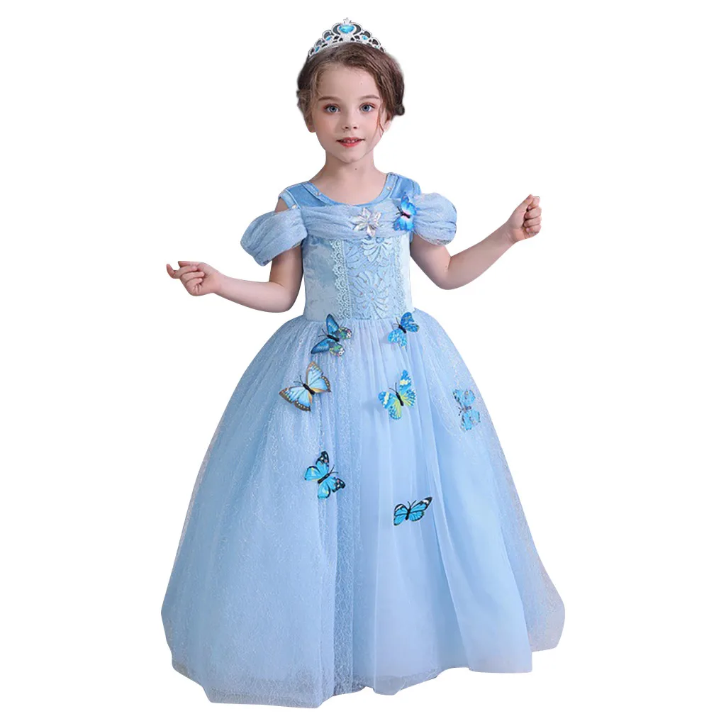 Для детей ясельного возраста детская одежда для девочек с кружевными бабочками Лоскутные вечерние платье принцессы для косплея