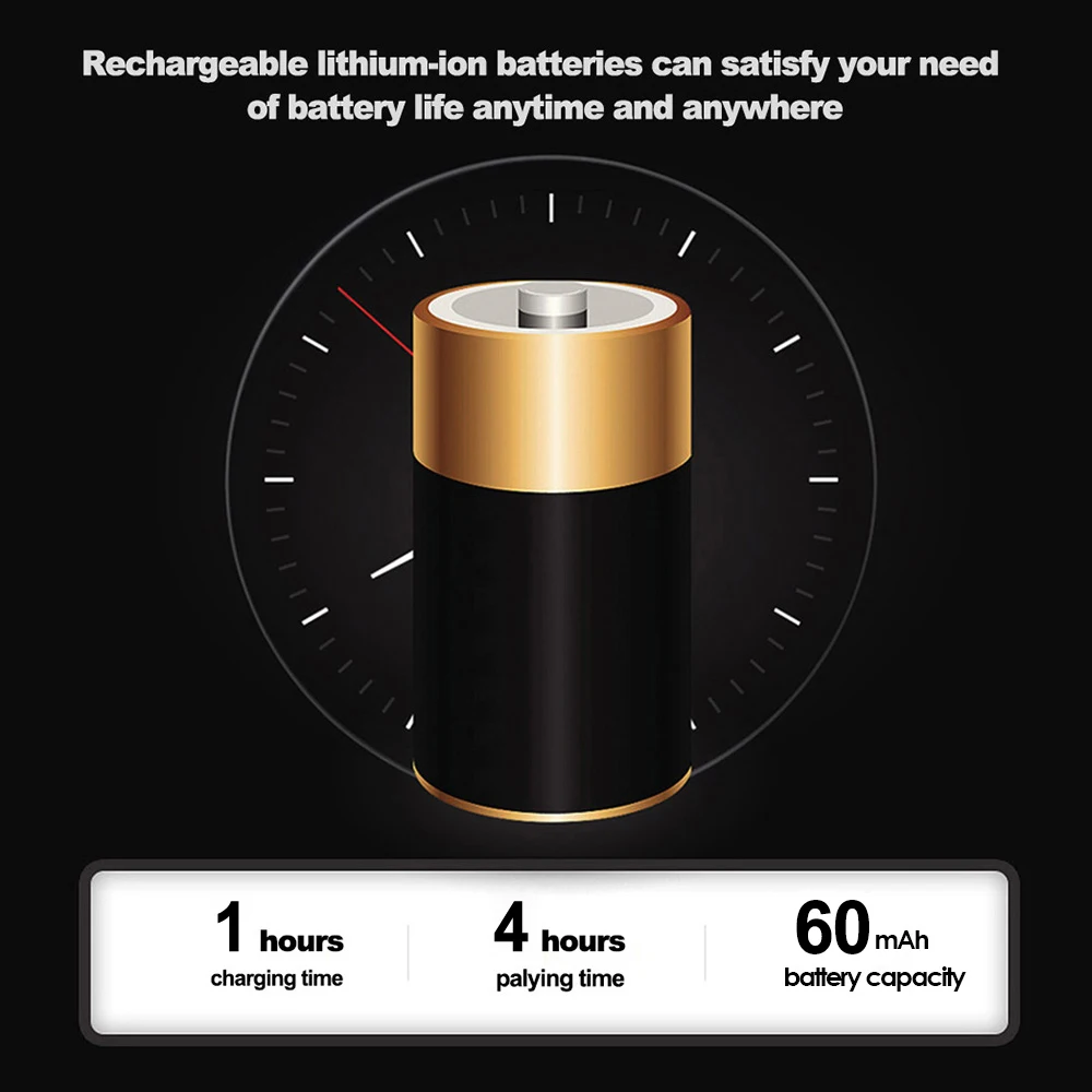 Встроенный аккумулятор 60 мАч обеспечивает до 4 часов работы. Компактный и портативный с задней клипсой, удобный в использовании. Поддерживает функцию автоспуска.