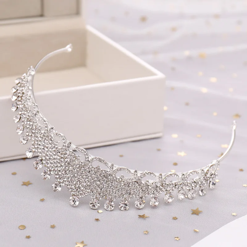 Материал: цинковый сплав, искусственный кристалл Измерение: 29 см * 3,5 см Вес: 74,9 г Женские свадебные украшения для волос Аксессуары украшение для головы Украшение для волос свадебная корона для волос