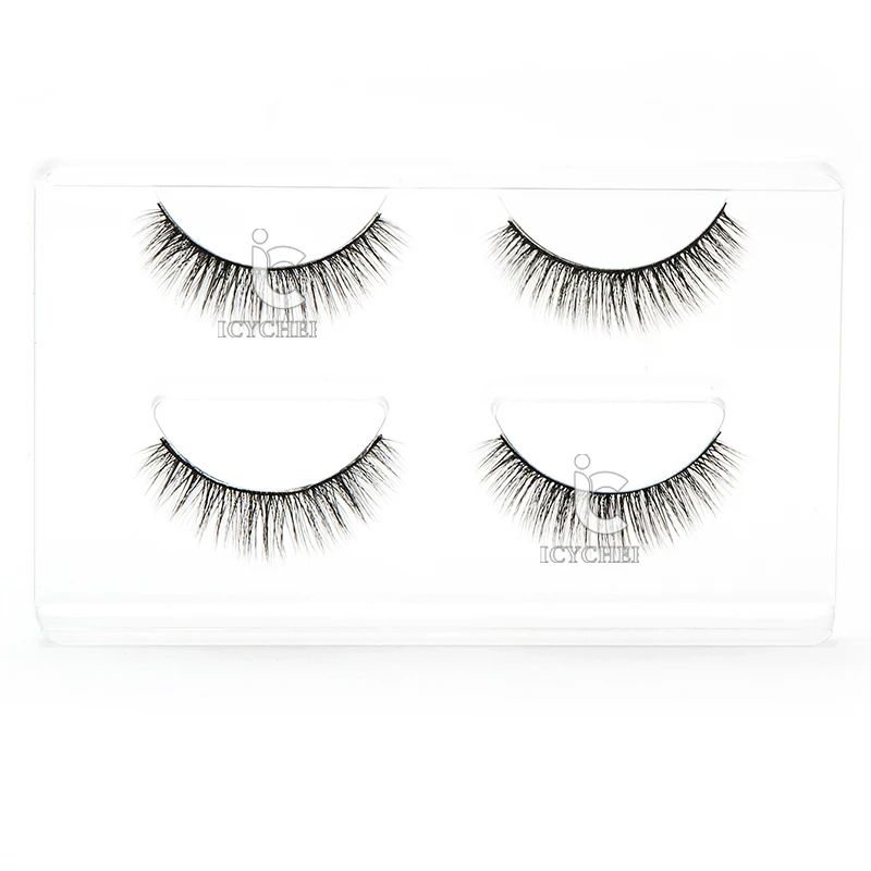 ICYCHEER 2Pairs False Eyelashes 3D Mink Lashes No Magnetic Eyelashes Natural Long Black Color Makeup Lash Extension Tools