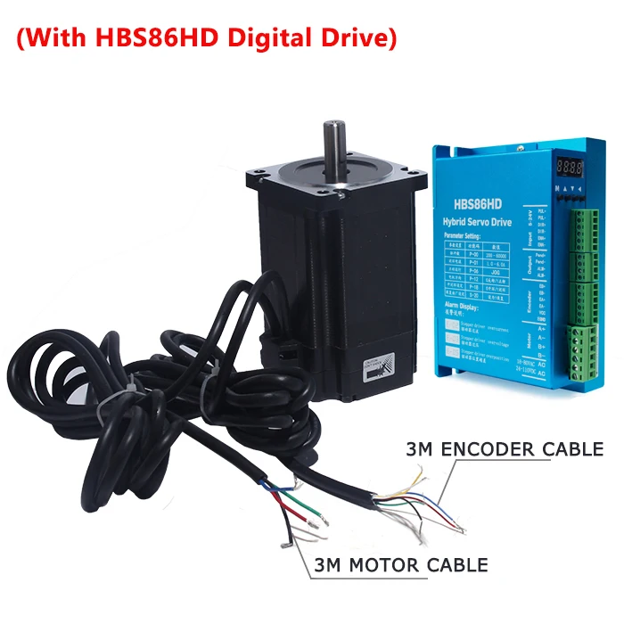 Комплект HBS86HD: 1 Цифровой шаговый двигатель HBS86HD + 1 86HSE4.5N 4.5N.M. Мотор + 1x3 м кабель энкодера + 1x3 м кабель мотора