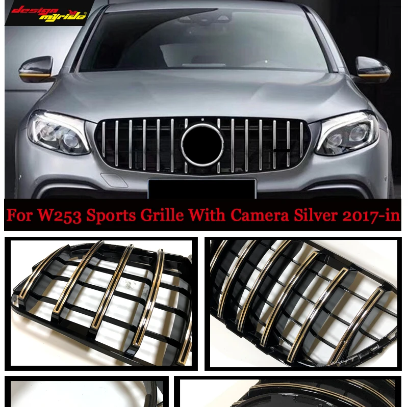 Для MercedesMB W253 clc-класс Передняя решетка гриль без знака GT R СТИЛЬ ABS серебро добавить на стиль прямой 1:1 замена 2017-in