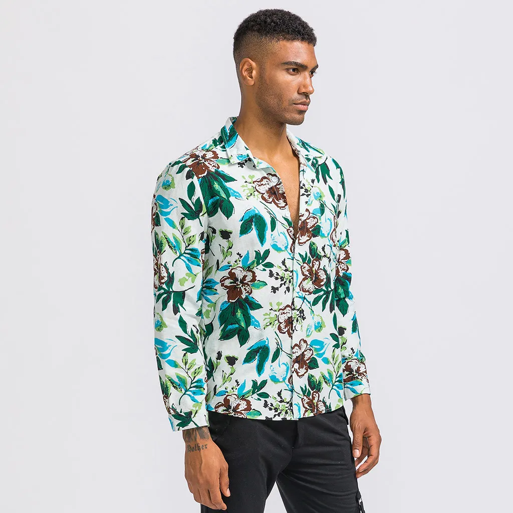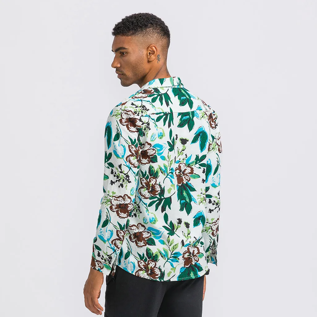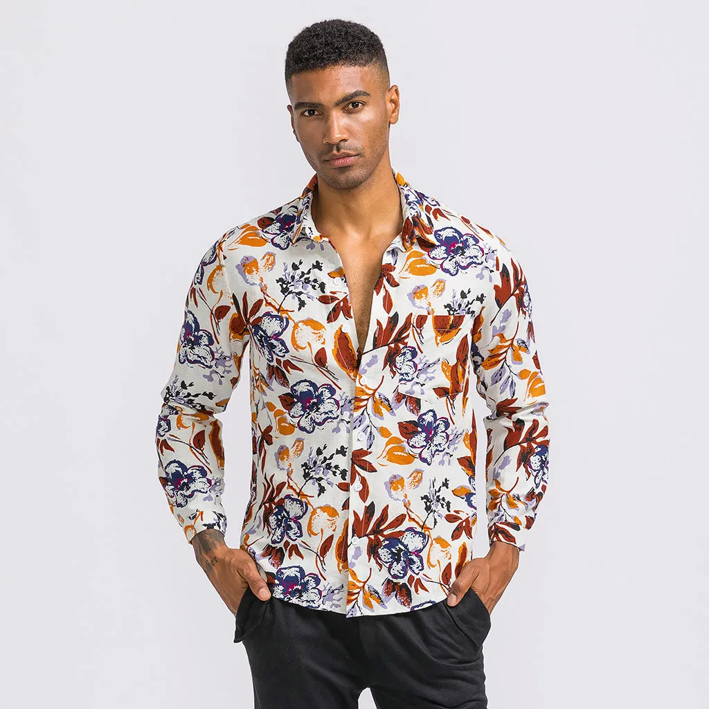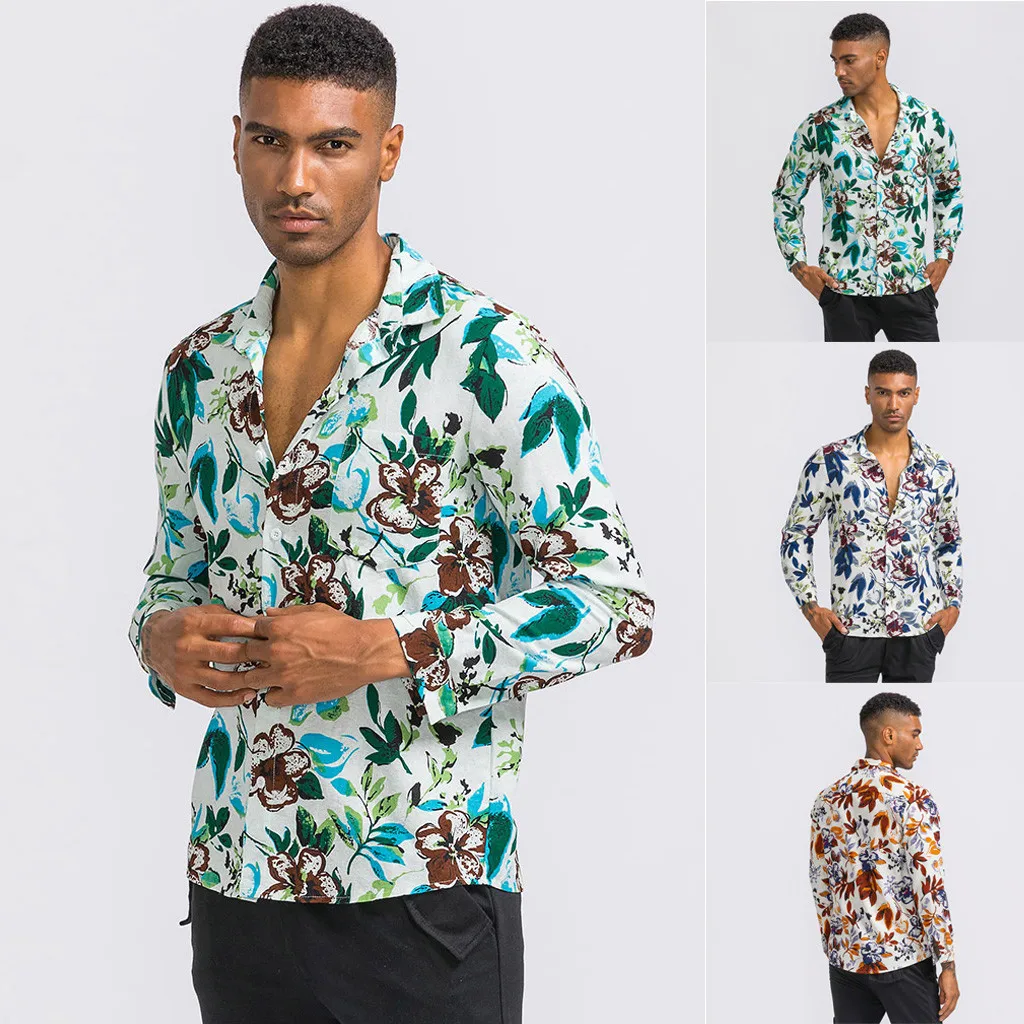 Мужские полосатые Печатные нагрудные карманы отложной воротник с длинным рукавом Повседневные рубашки
