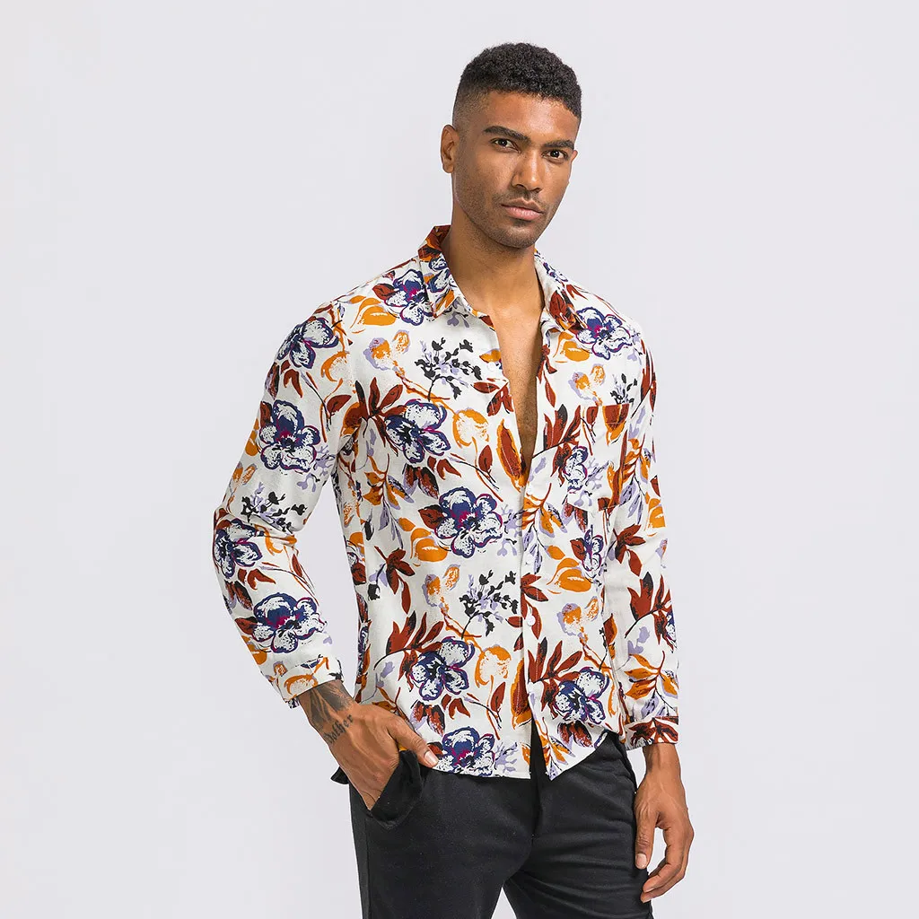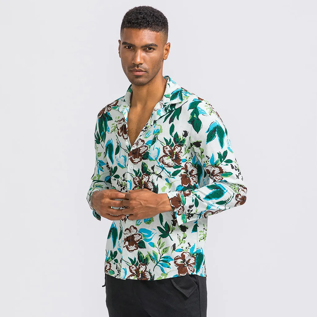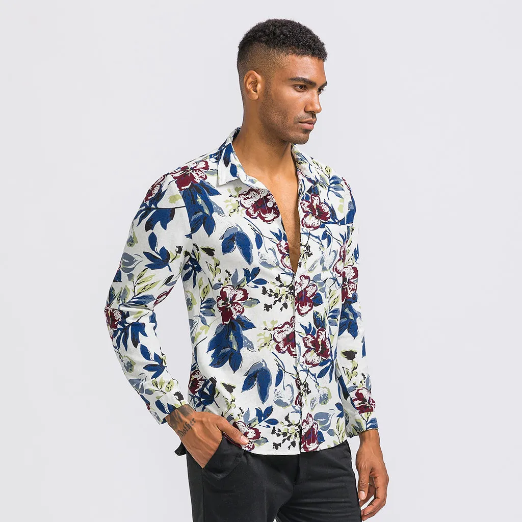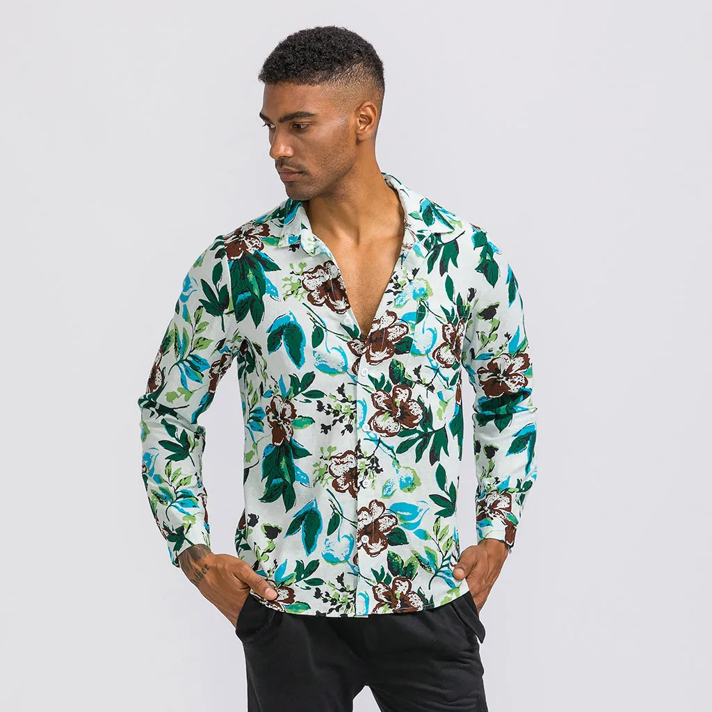 Мужские полосатые Печатные нагрудные карманы отложной воротник с длинным рукавом Повседневные рубашки