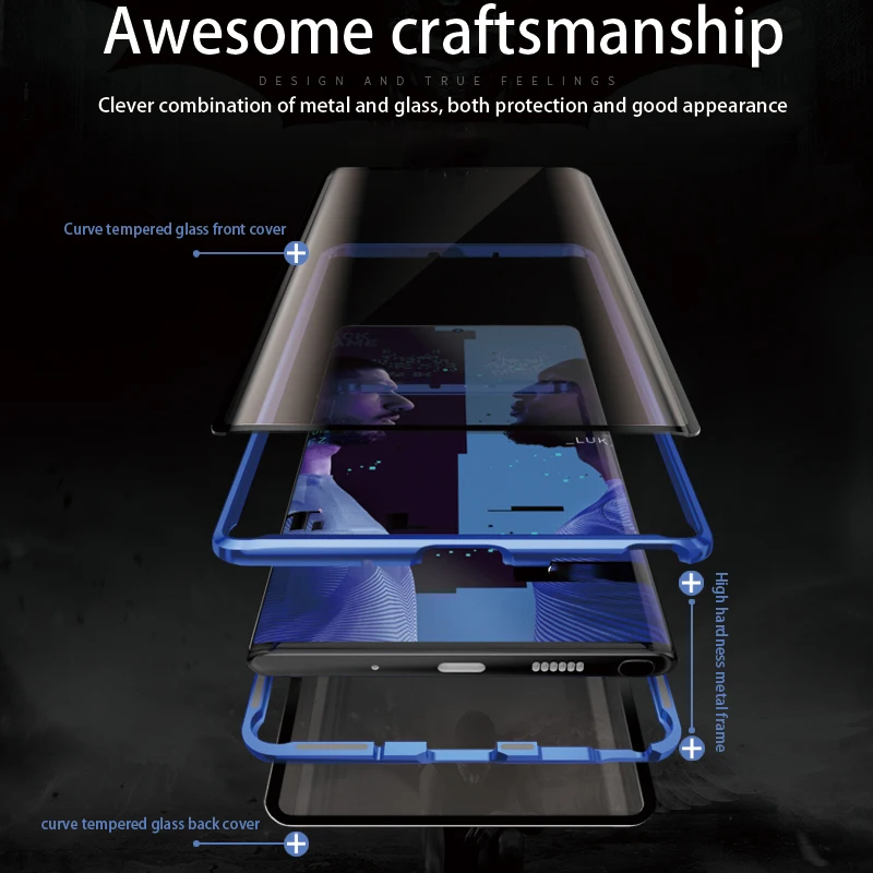 1. Магнитная адсорбционная конструкция, одна секундная установка 2. Роскошный металлический бампер, лучшее ощущение руки 3. Прозрачное закаленное стекло с обеих сторон 4. Поддержка беспроводной зарядки 5. 360 градусов Полная защита